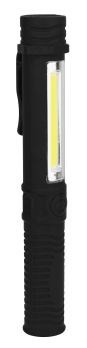 Leuchtstarke Taschenlampe mit 1W LED (50 Lumen) plus seitlicher Arbeitsleuchte mit 3W (100 Lumen). Mit Magnet und Clip. Wiederaufladbar durch USB-C Kabel (inkl). Maße 16,7 x 2,2cm. VE 100/50 Stück.