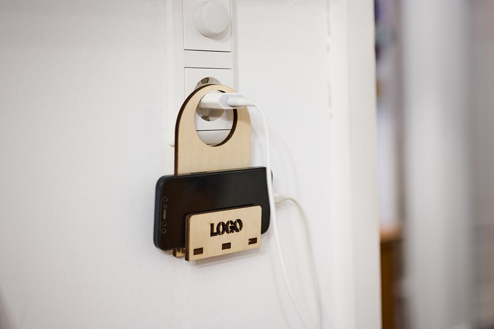 Egal wo sich die Steckdose befindet, auf dem Boden liegen muss das Smartphone mit dem Steckdosen-Butler nicht. Das Logo kann als Branding umgesetzt oder durchgelasert werden. Aus naturbelassenem Birkensperrholz, hergestellt in der EU. Maße ca. 15 x 8,5 x 2,3 x 0,5cm. VE 175/1 Stück.
