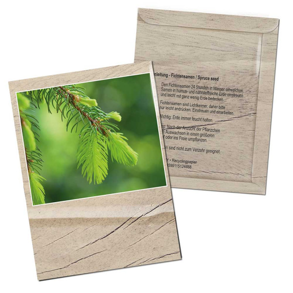 Samentütchen Fichte 6,3 x 9,8 cm gefüllt mit ca. 2g Fichtensamen. Tüte aus Recyclingpapier.