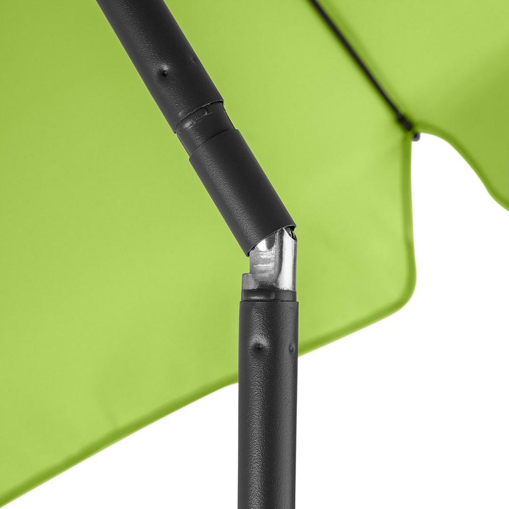 Moderner Sonnenschirm mit Gestell in Titan-Finish, Knickvorrichtung und mit Volant Einfache Handhabung durch Sicherheitsschieber, sehr stabile Fiberglasschienen, zweiteiliger und stufenlos höhenverstellbarer Stock mit Knickvorrichtung zur Neigung des Schirms, Stock in edlem Titan-Finish, Unterstock mit ca. 120 cm Länge und Drehfeststeller zur sicheren Fixierung, komfortables Tragefutteral, Bezug mit Lichtschutzfaktor UPF 50+, angeschnittenes Volant, exklusive Füllständer (Art. 8920 oder Art. 8905) / Erdspieß (Art. 8939)