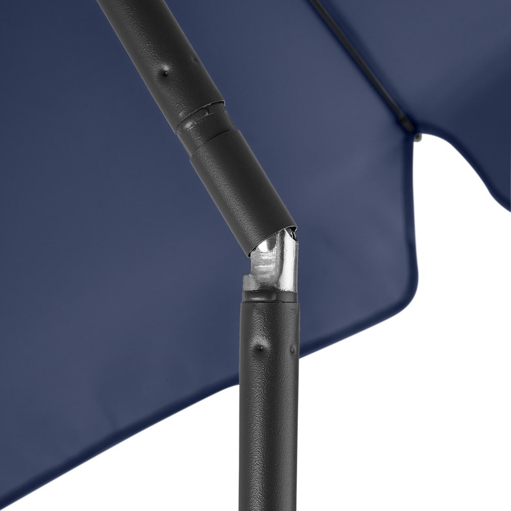 Moderner Sonnenschirm mit Gestell in Titan-Finish, Knickvorrichtung und mit Volant Einfache Handhabung durch Sicherheitsschieber, sehr stabile Fiberglasschienen, zweiteiliger und stufenlos höhenverstellbarer Stock mit Knickvorrichtung zur Neigung des Schirms, Stock in edlem Titan-Finish, Unterstock mit ca. 120 cm Länge und Drehfeststeller zur sicheren Fixierung, komfortables Tragefutteral, Bezug mit Lichtschutzfaktor UPF 50+, angeschnittenes Volant, exklusive Füllständer (Art. 8920 oder Art. 8905) / Erdspieß (Art. 8939)