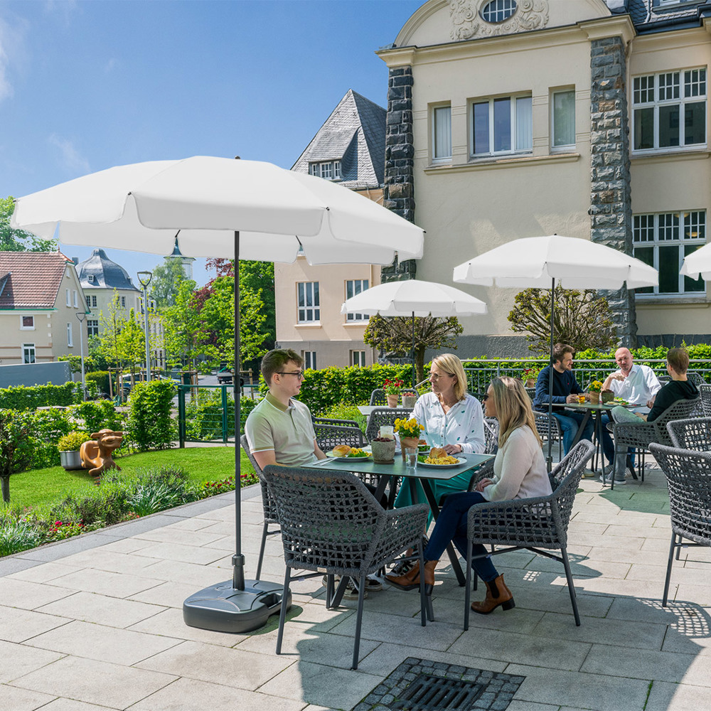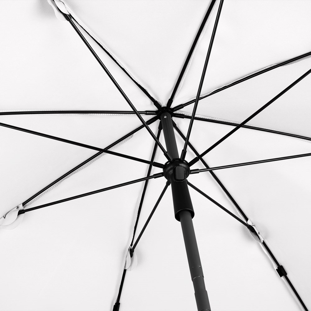 Moderner Sonnenschirm mit Gestell in Titan-Finish, Knickvorrichtung und mit Volant Einfache Handhabung durch Sicherheitsschieber, sehr stabile Fiberglasschienen, zweiteiliger und stufenlos höhenverstellbarer Stock mit Knickvorrichtung zur Neigung des Schirms, Stock in edlem Titan-Finish, Unterstock mit ca. 120 cm Länge und Drehfeststeller zur sicheren Fixierung, komfortables Tragefutteral, Bezug mit Lichtschutzfaktor UPF 50+, angeschnittenes Volant, exklusive Füllständer (Art. 8920 oder Art. 8905) / Erdspieß (Art. 8939)