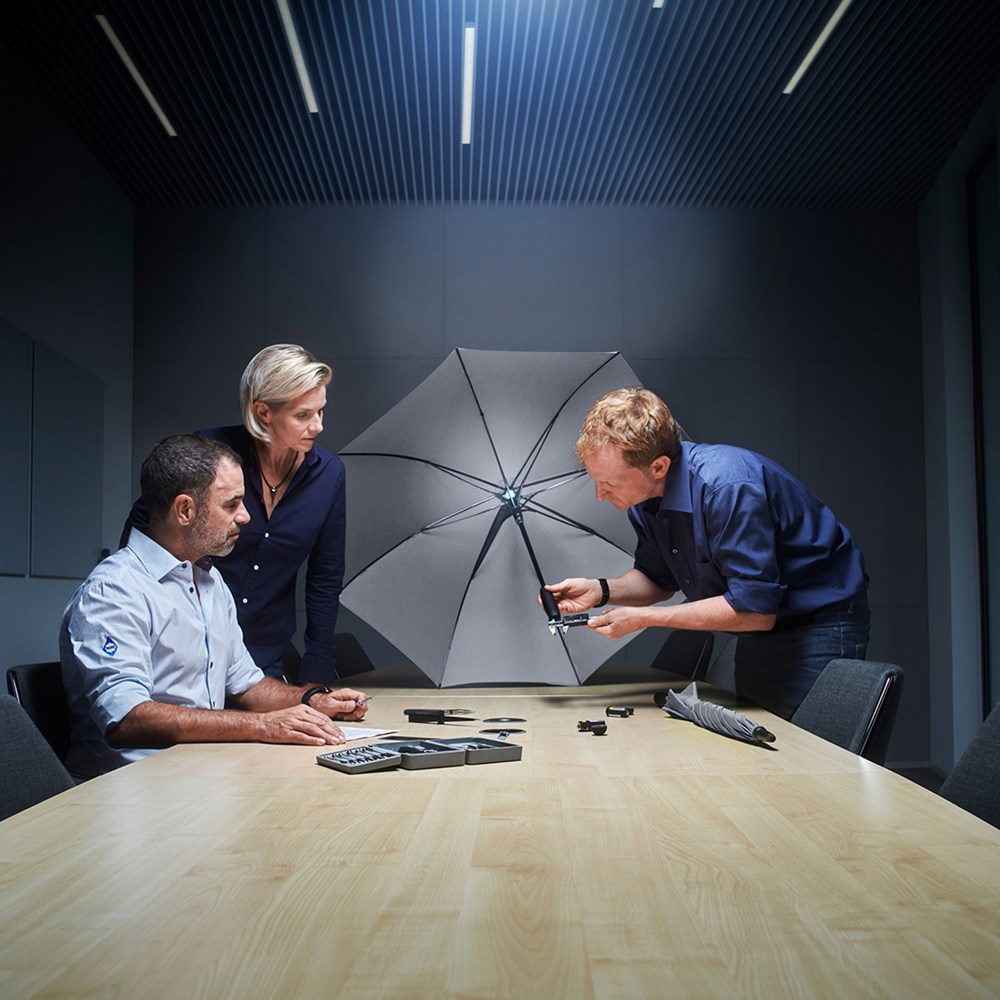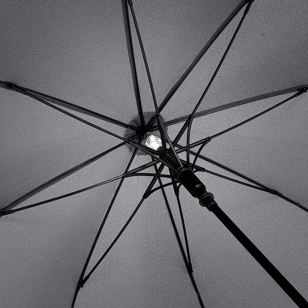 Effektvoller Automatik-Stockschirm in mittlerer Größe mit LED-Innenbeleuchtung Komfortable Automatik-Funktion zum schnellen Öffnen, hochwertiges Windproof-PLUS-System für eine maximale Gestell-Flexibilität bei stärkeren Windböen, flexible Fiberglasschienen, Soft-Feel-Griff mit integrierter Auslösetaste, Taste zum Ausschalten des Lichts und Werbeanbringungsmöglichkeit, höherer Korrosionsschutz durch schwarze Galvanisierung des Stahlstocks, WEEE-Reg.-Nr. DE 14360689, Batt-Reg.-Nr. DE 52803080, Batterien (3 x AAA) im Lieferumfang enthalten.