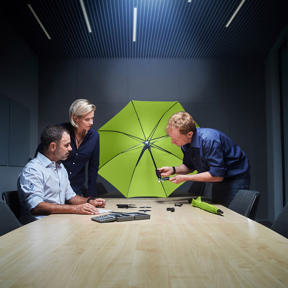 Effektvoller Automatik-Stockschirm in mittlerer Größe mit LED-Innenbeleuchtung Komfortable Automatik-Funktion zum schnellen Öffnen, hochwertiges Windproof-PLUS-System für eine maximale Gestell-Flexibilität bei stärkeren Windböen, flexible Fiberglasschienen, Soft-Feel-Griff mit integrierter Auslösetaste, Taste zum Ausschalten des Lichts und Werbeanbringungsmöglichkeit, höherer Korrosionsschutz durch schwarze Galvanisierung des Stahlstocks, WEEE-Reg.-Nr. DE 14360689, Batt-Reg.-Nr. DE 52803080, Batterien (3 x AAA) im Lieferumfang enthalten.