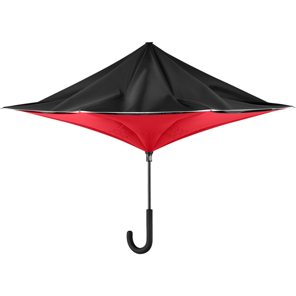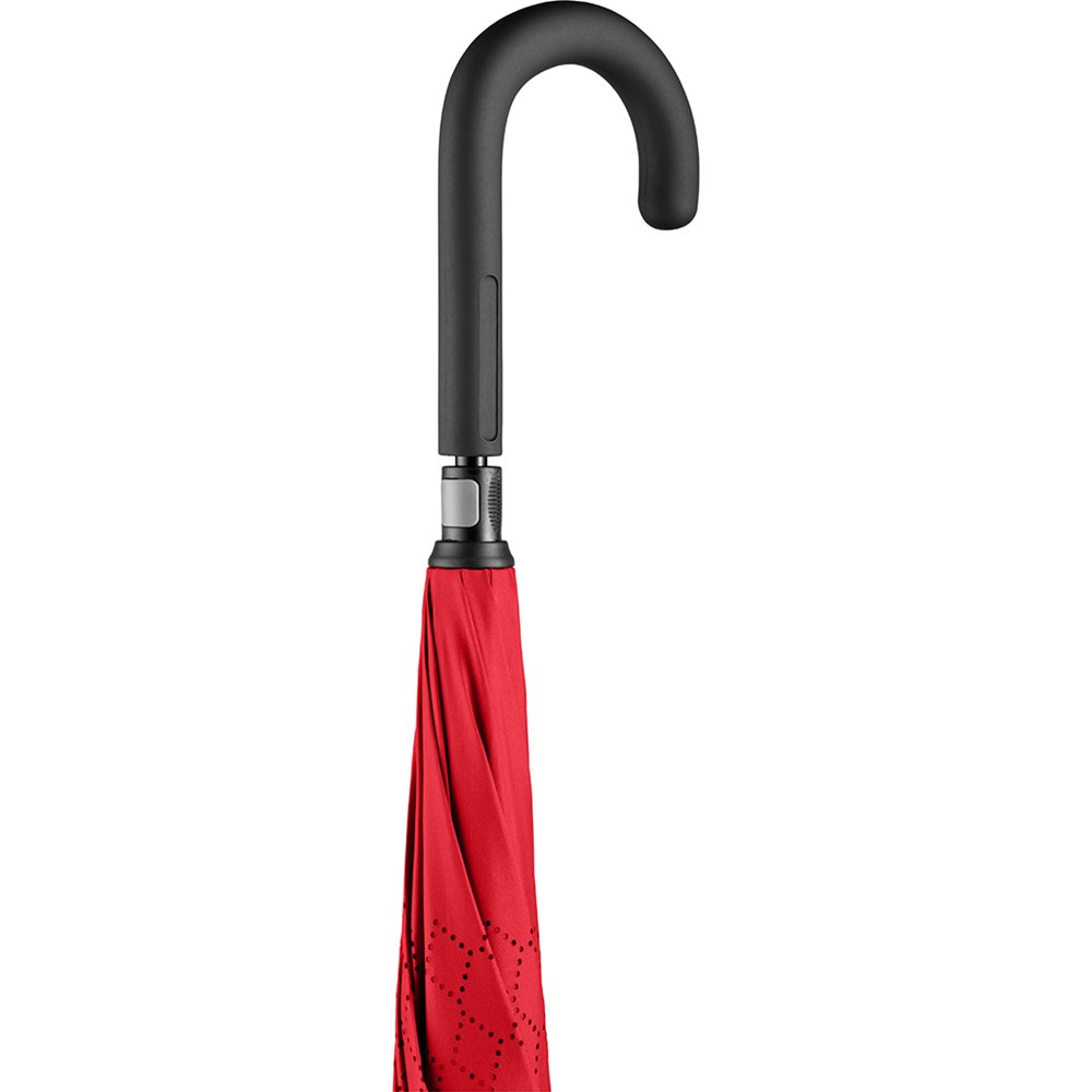 Trendiger Stockschirm mit umgekehrtem Öffnungs- und Schließmechanismus Einfache Handhabung durch Sicherheitsschieber, hochwertiges Windproof-PLUS-System für eine maximale Gestell-Flexibilität bei stärkeren Windböen, von innen nach außen öffnendes Fiberglasgestell, flexible Fiberglasschienen, Doppel-Bezug mit gelasertem Ventilationsmuster zur Vermeidung von Luftstau, Bezug mit modischer Reflexpaspel in Silber, Soft-Touch-Rundhakengriff mit Werbeanbringungsmöglichkeit. Auch als Taschenschirm erhältlich (Art. 5415).