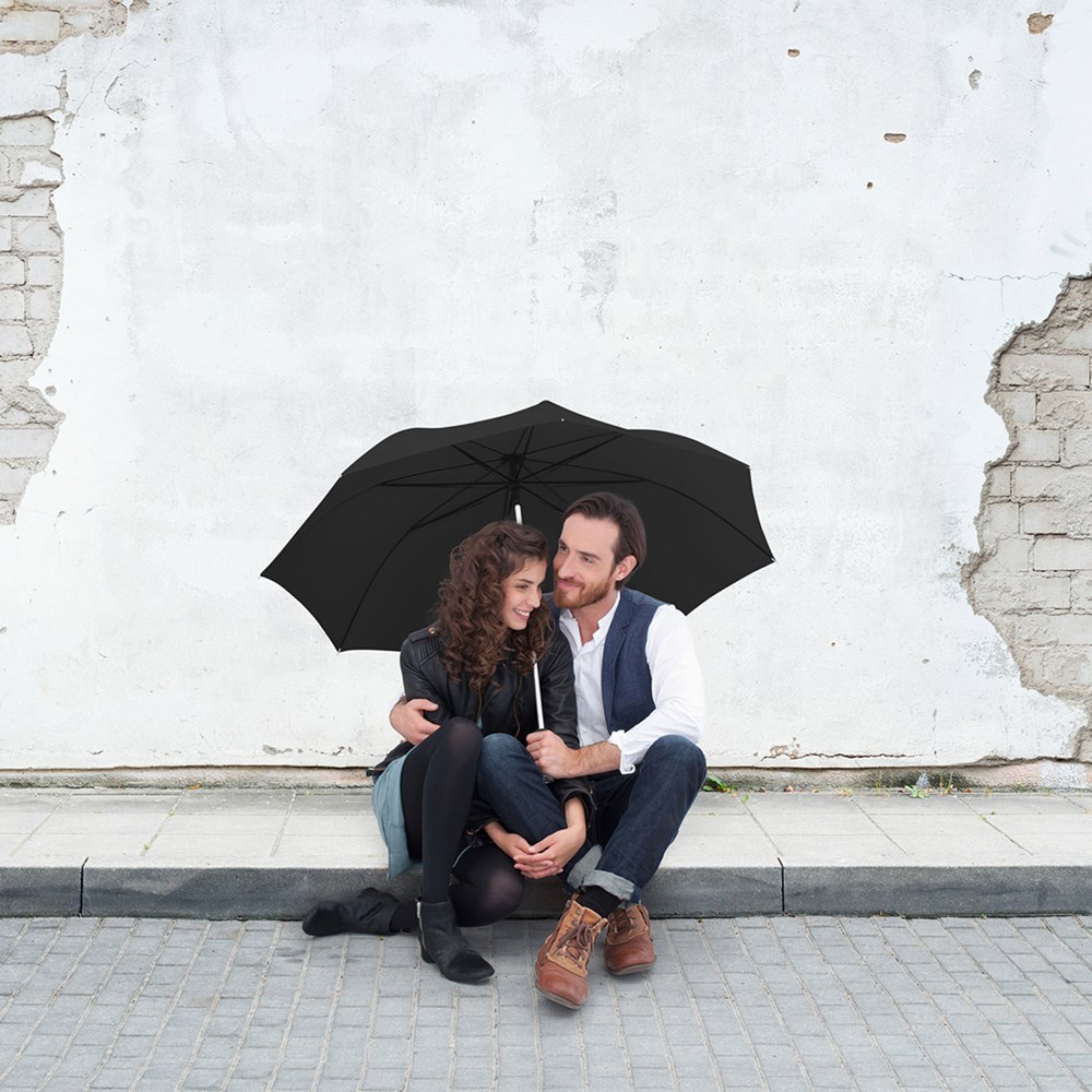 Stylischer Automatik-Gästeschirm für zwei Personen mit farblich auf den Bezug abgestimmtem Griff Komfortable Automatik-Funktion zum schnellen Öffnen, hochwertiges Windproof-PLUS-System für eine maximale Gestell-Flexibilität bei stärkeren Windböen, flexible Fiberglasschienen, leichter aber stabiler Aluminiumstock, formschöner Soft-Touch-Griff mit silberner Auslösetaste und Werbeanbringungsmöglichkeit, gastfreundlicher großer Durchmesser. Auch als Taschenschirm (Art. 5565, 5640) und als Stockschirm (Art. 7560) erhältlich.