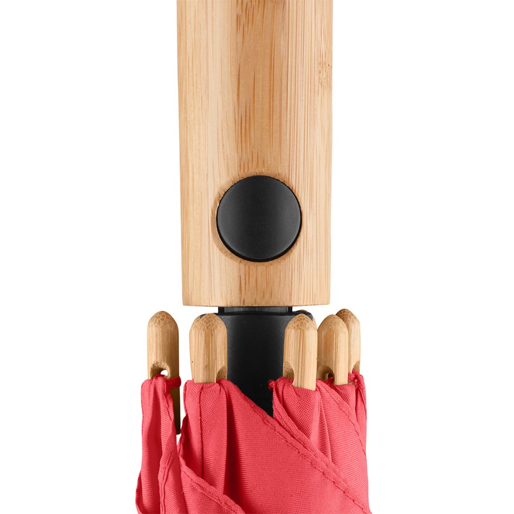 Nachhaltiger Stockschirm in mittlerer Größe mit Elementen aus Bambus und Bezug aus recycelten Kunststoffen Komfortable Automatik-Funktion zum schnellen Öffnen, hochwertiges Windproof-PLUS-System für eine maximale Gestell-Flexibilität bei stärkeren Windböen, flexible Fiberglasschienen, leichter Bambusstock, Polyester-Pongee Bezugsmaterial aus recycelten Kunststoffen, farbabhängig auch mit waterSAVE® Bezugsmaterial erhältlich, mit waterSAVE®-Label auf dem Schließband, Bambus-Spitzen, gerader Bambusgriff mit schwarzer Auslösetaste und Werbeanbringungsmöglichkeit. Auch als Taschenschirm (Art. 5429) erhältlich.