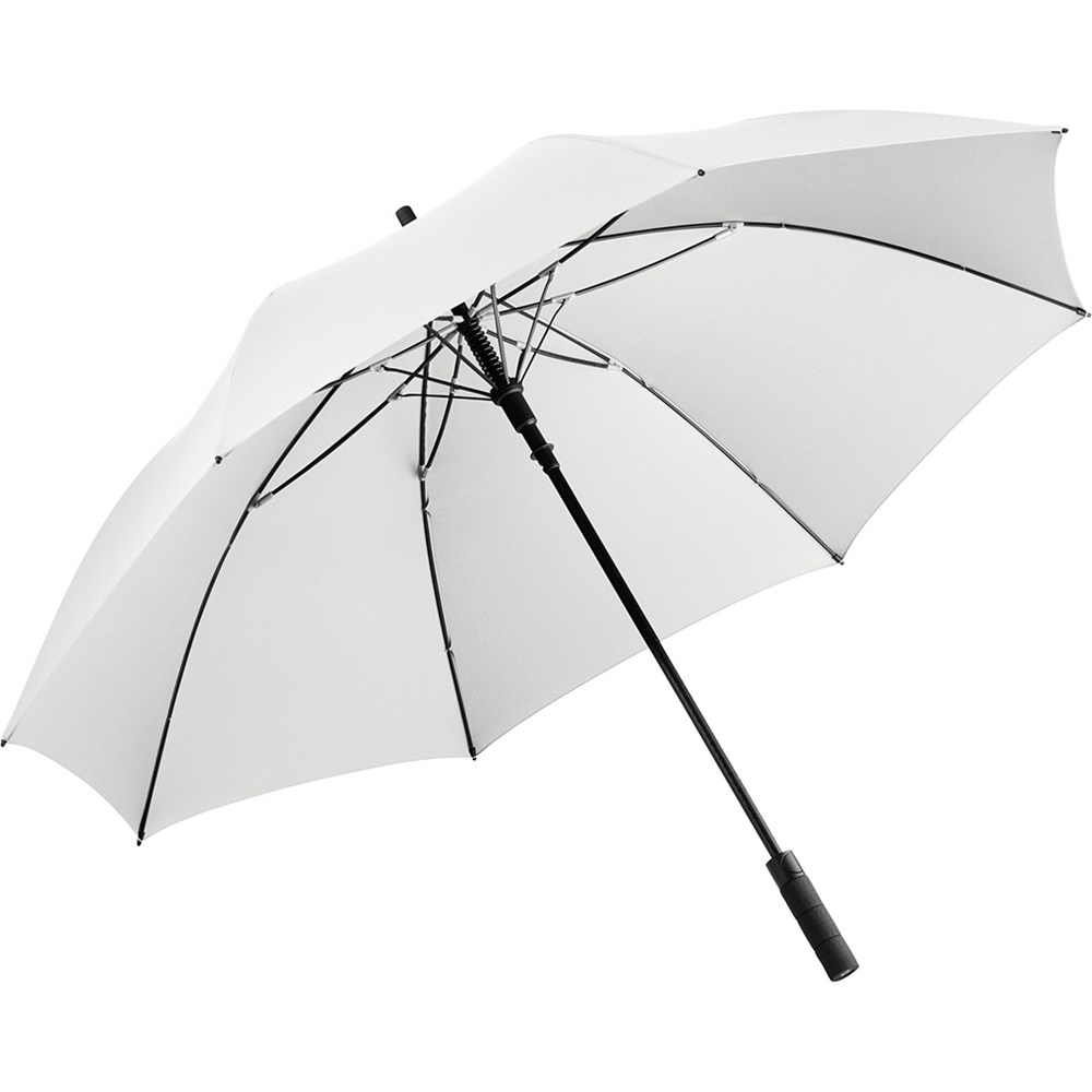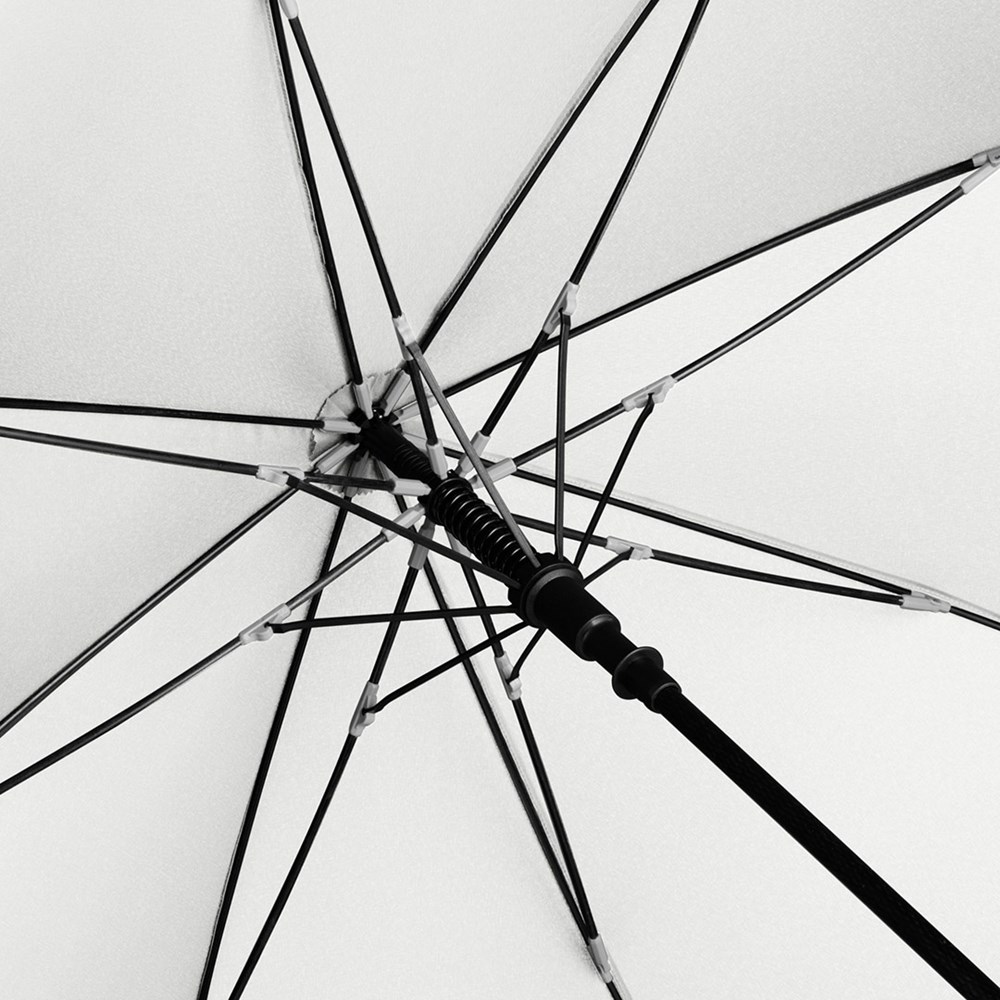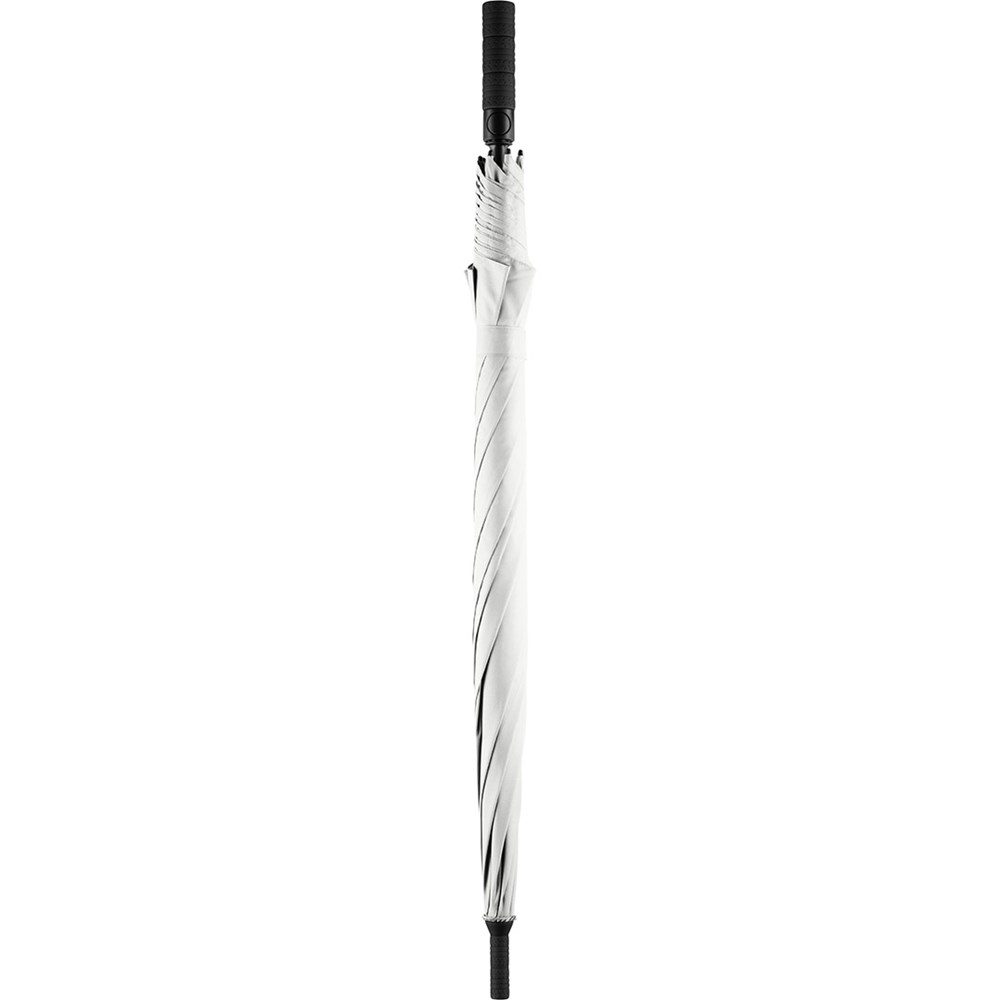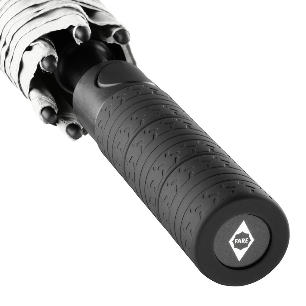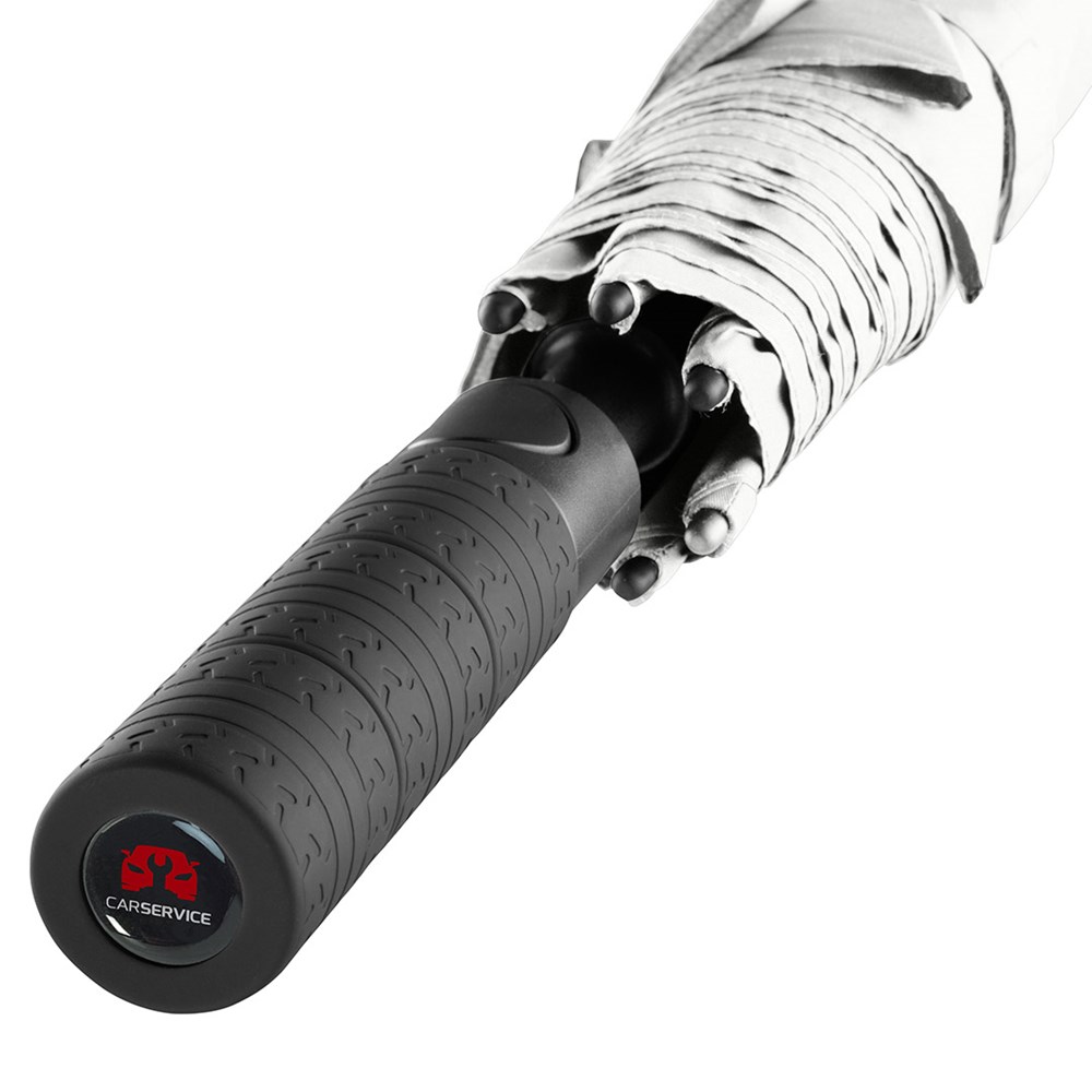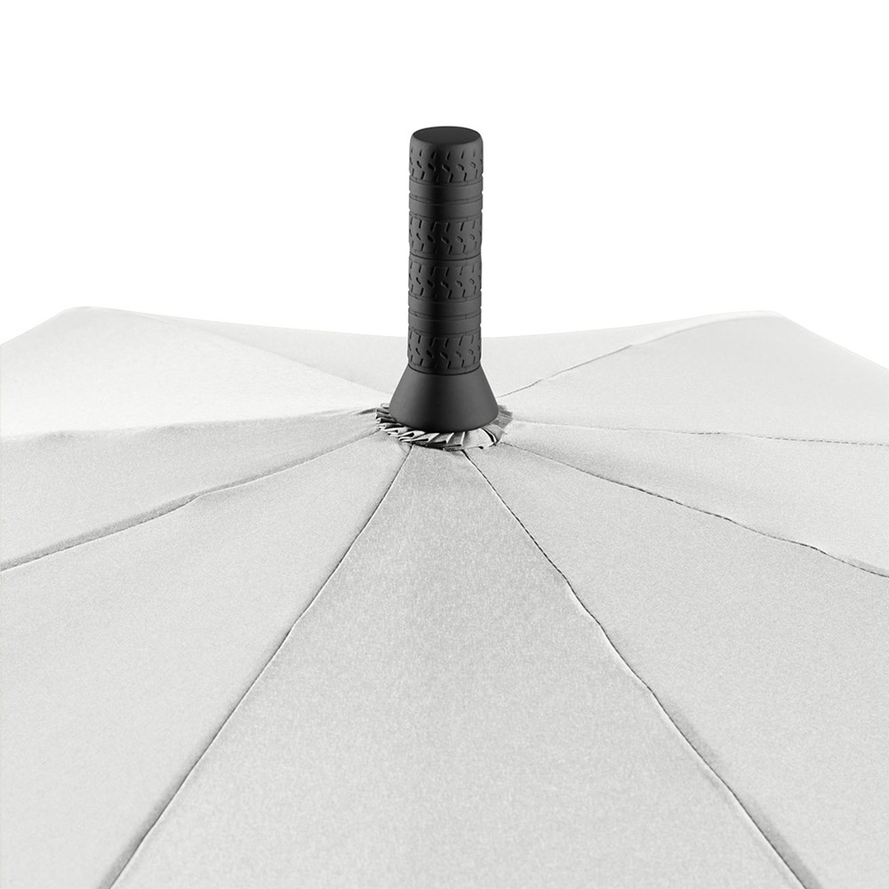 Exklusiver Automatik-Golf-/Gästeschirm für zwei Personen mit Reifenprofil-Design-Elementen Komfortable Automatik-Funktion zum schnellen Öffnen, hochwertiges Windproof-PLUS-System für eine maximale Gestell-Flexibilität bei stärkeren Windböen, flexible Fiberglasschienen mit grauen Gelenken, handsympathischer Soft-Feel-Griff im Reifenprofil-Design mit integrierter Auslösetaste und Werbeanbringungsmöglichkeit. Auch als Taschenschirm (Art. 5455) erhältlich.
