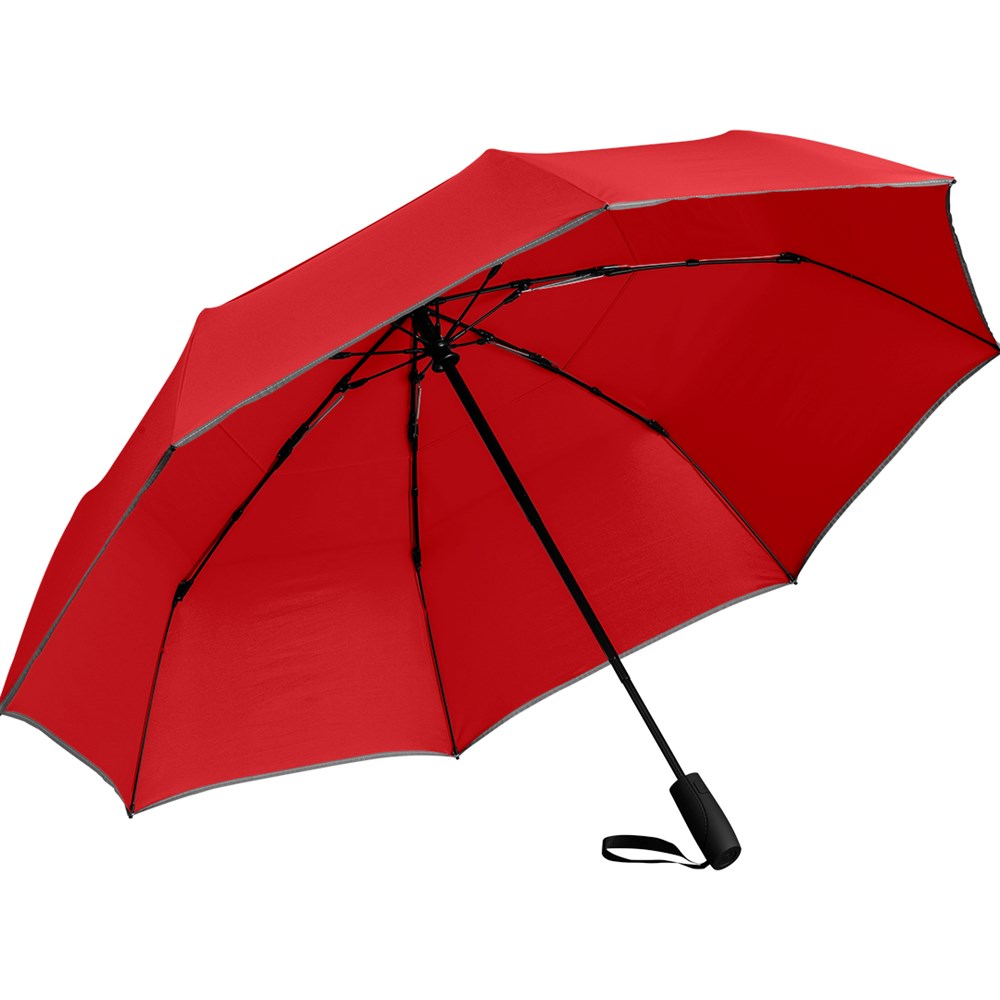 Äußerst stabiler Doppelautomatik-Taschenschirm in Übergröße Komfortable Doppelautomatik-Funktion zum schnellen Öffnen und Schließen, hochwertiges Windproof-PLUS-System für eine maximale Gestell-Flexibilität bei stärkeren Windböen, flexible Fiberglasschienen, überlappender Ventilationsbezug zur Regulierung von Überdruck durch stärkere Windböen, wassersparend gefärbtes Polyester-Pongee waterSAVE® Bezugsmaterial aus recycelten Kunststoffen und mit modischer Reflexpaspel in Silber, mit waterSAVE®-Label auf dem Schließband, Griff aus recyceltem ABS (rABS) mit integrierter Auslösetaste und Werbeanbringungsmöglichkeit, komfortables Futteral mit hochwertigem Zipper