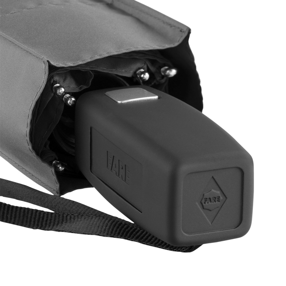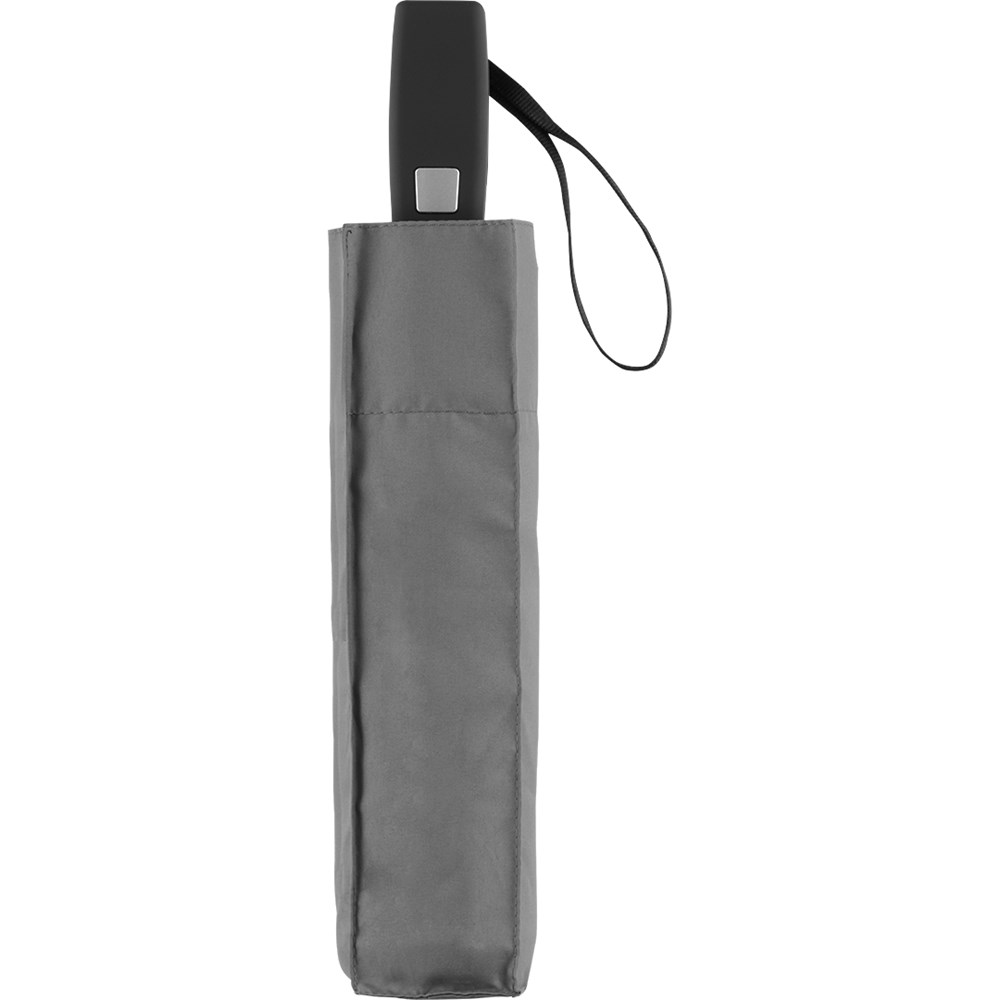 Auffälliger Doppelautomatik-Taschenschirm mit quadratischer Schirmform Komfortable Automatik-Funktion zum schnellen Öffnen und Schließen, hochwertiges Windproof-PLUS-System für eine maximale Gestell-Flexibilität bei stärkeren Windböen, exklusiver Soft-Feel-Griff in quadratischer Form mit silberner Auslösetaste und doppelter Werbeanbringungsmöglichkeit, praktisches Futteral in quadratischer Ausführung