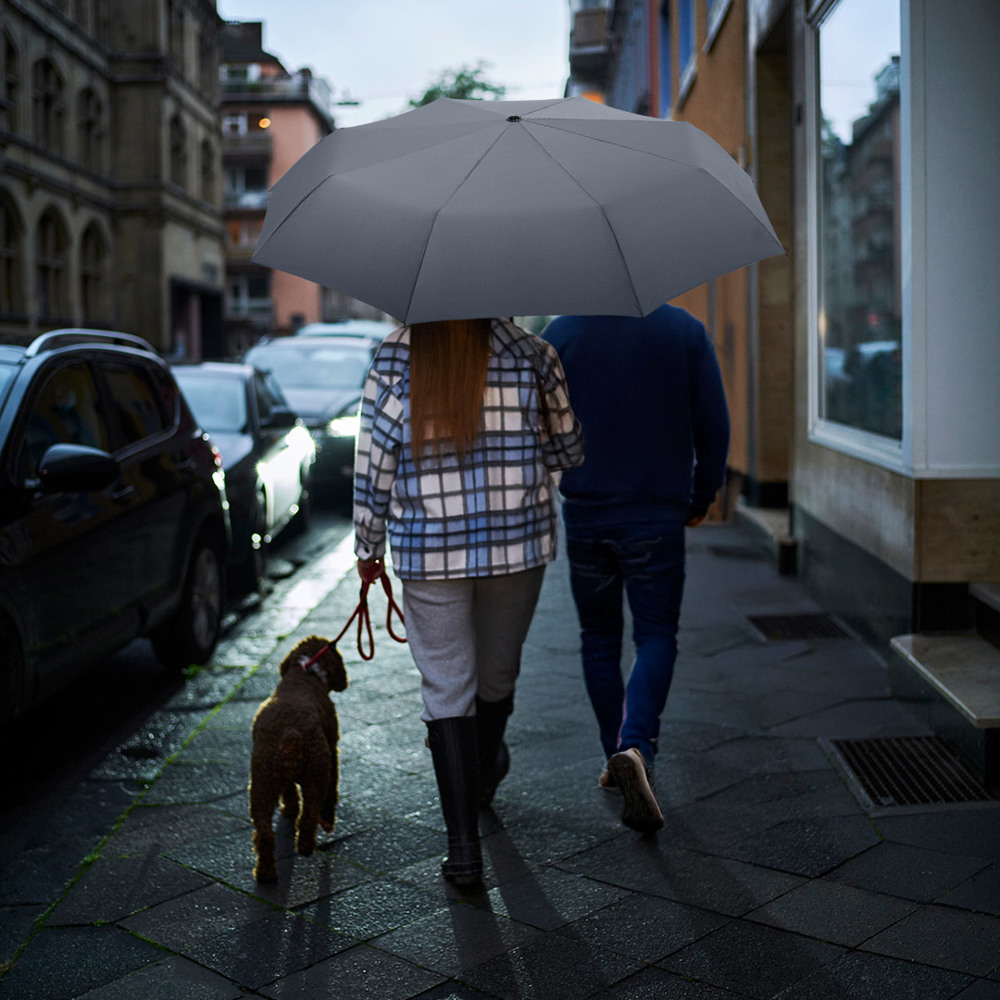 Preislich attraktiver Doppelautomatik-Taschenschirm in Übergröße mit Windproof-PLUS-System Komfortable Doppelautomatik-Funktion zum schnellen Öffnen und Schließen des Schirms, hochwertiges Windproof-PLUS-System für eine maximale Gestell-Flexibilität bei stärkeren Windböen, handsympathischer Soft-Feel-Griff mit integrierter Auslösetaste, elastischer Tragekordel und Werbeanbringungsmöglichkeit