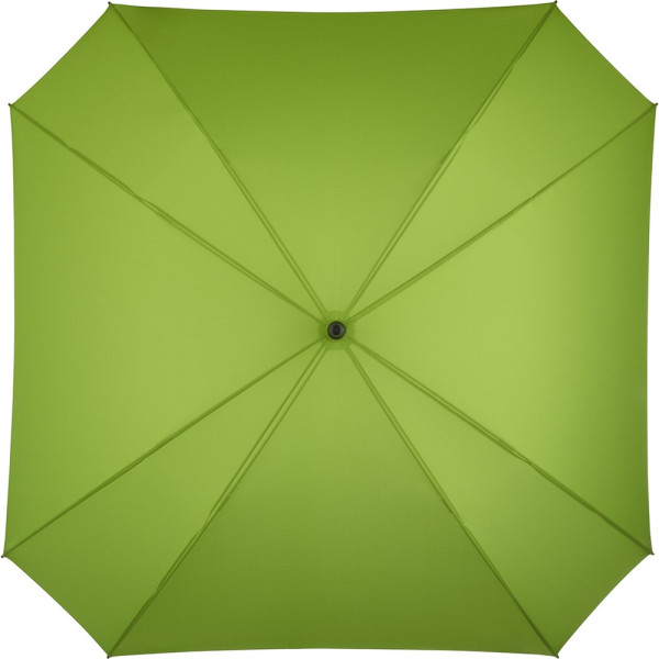 Quadratischer Gästeschirm für zwei Personen Komfortable Automatik-Funktion zum schnellen Öffnen, hochwertiges Windproof-PLUS-System für eine maximale Gestell-Flexibilität bei stärkeren Windböen, flexible Fiberglasschienen, farbige Ummantelung des Stahlstocks, gerader Soft-Touch-Griff mit integrierter Auslösetaste und doppelter Werbeanbringungsmöglichkeit, gastfreundlicher großer Durchmesser
