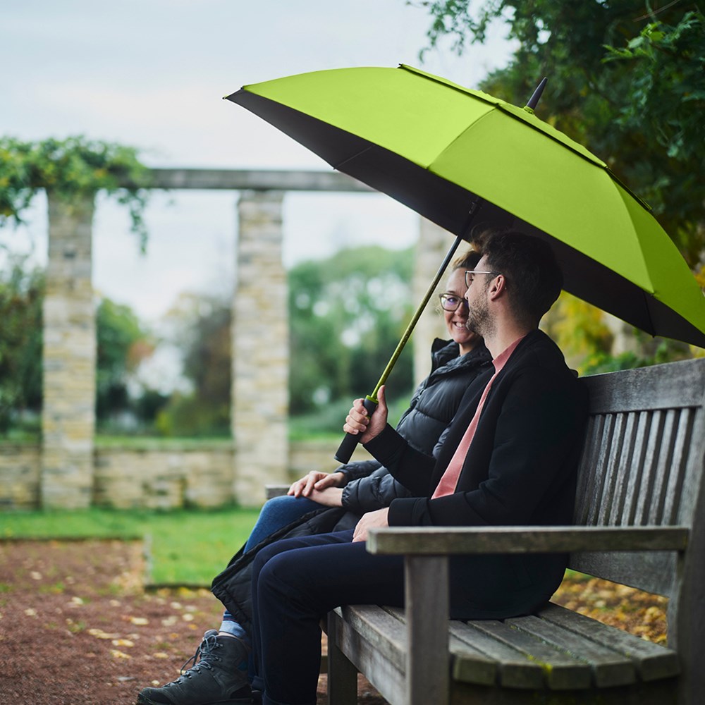 Exklusiver Automatik-Gästeschirm für zwei Personen mit Tropfenmotiv auf dem Fiberglasstock... mehr