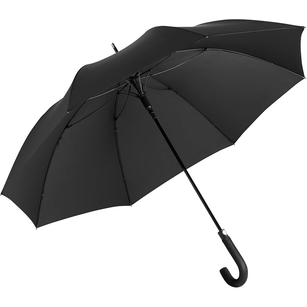 Komfortabler Automatik-Gästeschirm für zwei Personen mit handsympathischem Soft-Rundhakengriff Komfortable Automatik-Funktion zum schnellen Öffnen, hochwertiges Windproof-PLUS-System für eine maximale Gestell-Flexibilität bei stärkeren Windböen, flexible Fiberglasschienen, Soft-Rundhakengriff mit integrierter Auslösetaste, höherer Korrosionsschutz durch schwarze Galvanisierung des Stahlstocks, gastfreundlicher großer Durchmesser
