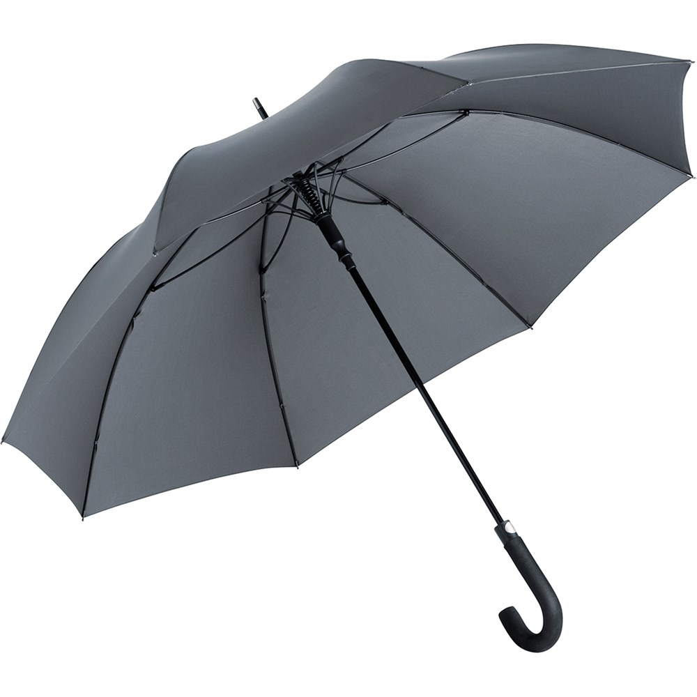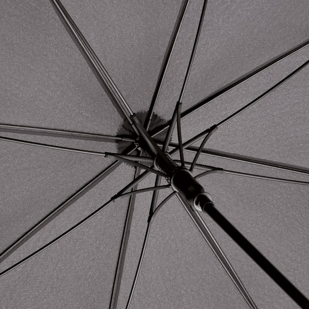 Komfortabler Automatik-Gästeschirm für zwei Personen mit handsympathischem Soft-Rundhakengriff Komfortable Automatik-Funktion zum schnellen Öffnen, hochwertiges Windproof-PLUS-System für eine maximale Gestell-Flexibilität bei stärkeren Windböen, flexible Fiberglasschienen, Soft-Rundhakengriff mit integrierter Auslösetaste, höherer Korrosionsschutz durch schwarze Galvanisierung des Stahlstocks, gastfreundlicher großer Durchmesser
