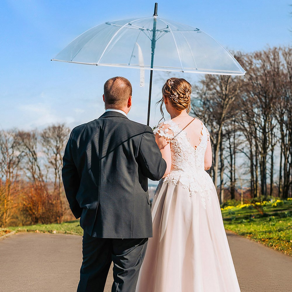 Ansprechender Automatik-Gästeschirm für zwei Personen mit transparentem Bezug und farbigen... mehr