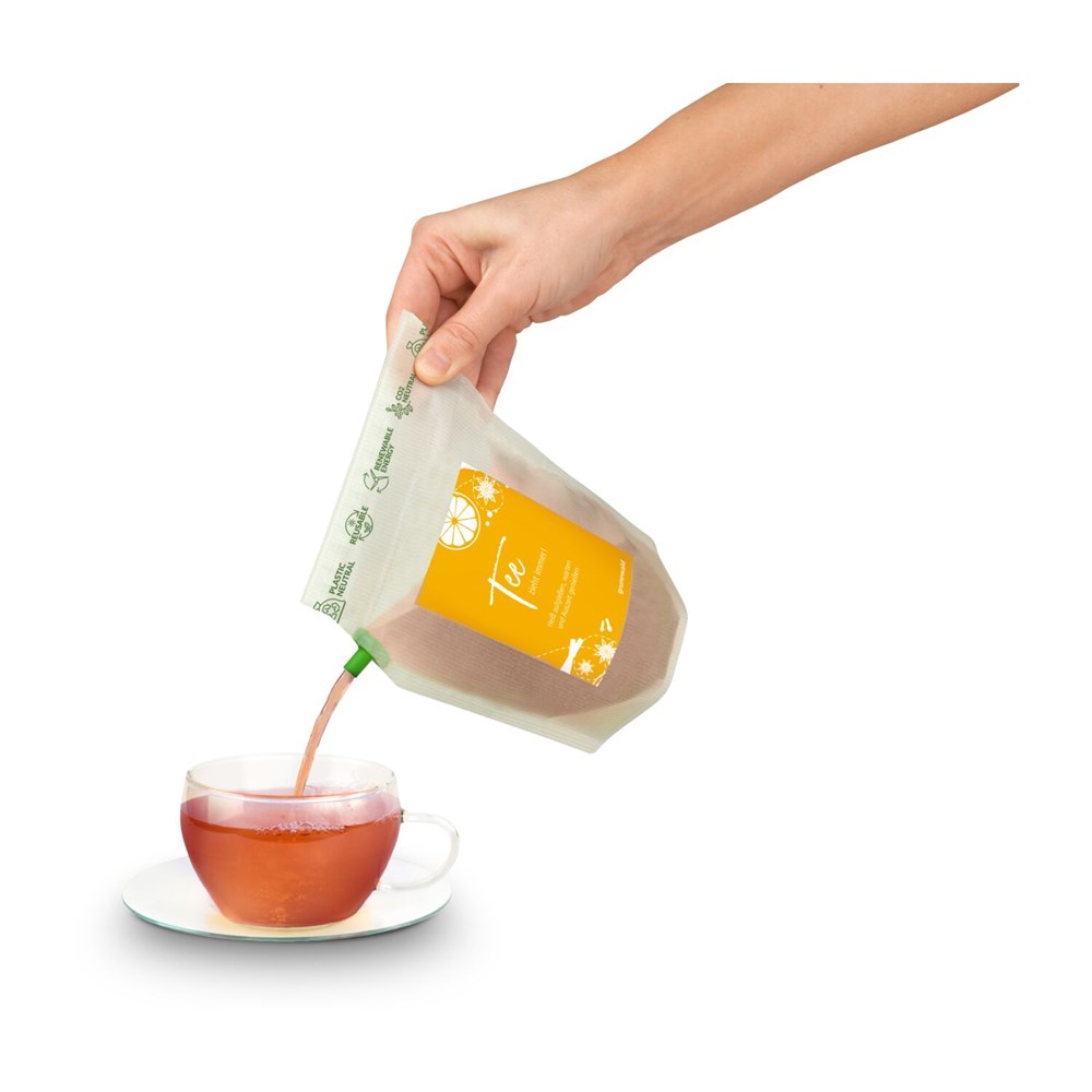 Werben Sie mit dem Geschmack von frischem Beeren-Früchtetee und verschenken Sie eine Wohltat für Körper und Seele. Der Brewer ist ideal für den geschäftigen Alltag, das Büro, auf Reisen, beim Camping oder zu Hause. Er verbindet Komfort in der Zubereitung mit feinstem Geschmack: Der mehrfach wiederverwendbare Beutel ist gefüllt mit frischem losem Tee. Ein integrierter Filter ermöglicht die schnelle und unkomplizierte Zubereitung. Einfach heißes Wasser aufgießen, ziehen lassen, ausschenken und genießen! Kein „Instant-Produkt”! Ab 100 Stück mit Frontetikett im Eigendesign. Ergibt ca. 400 ml. Herstellung 100% CO2 neutral (WeForest validiertes Baumpflanzungs-Projekt + UN kontrolliertes REED Kohlenstoffkompensationsprojekt) und Plastik neutral (Plastic Bank® zertifizierter Ausgleich durch das Sammeln von im Meer befindlichem Plastik) und mit Windenergie.