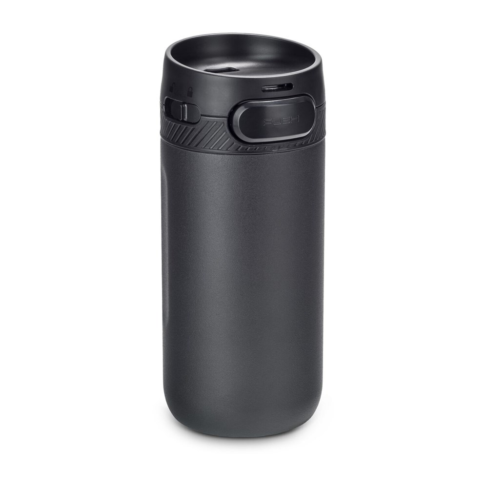 Moderner Thermobecher - schlichtes Design, einfaches Trinken durch Einhand-Druckknopfverschluss, praktische Verriegelung für einen sicheren Transport, leicht zu reinigen dank entnehmbarem Innenteil im Deckel, hergestellt zu 70 % aus recyceltem Edelstahl, 400 ml (Edelstahl - pulverbeschichtet, Kunststoff, Gummi)