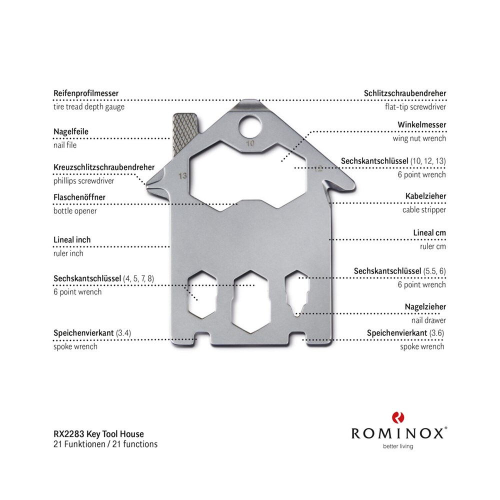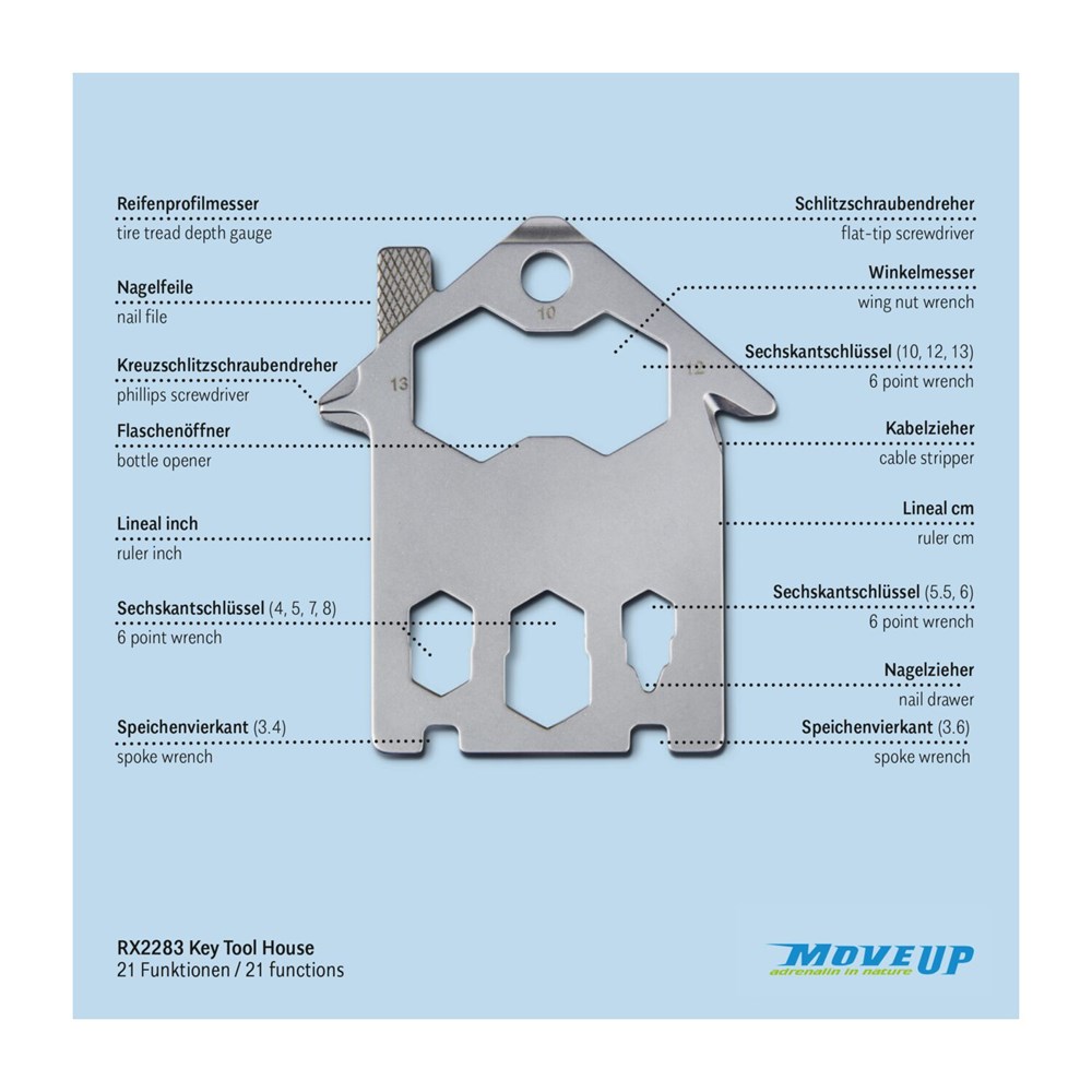 Multitool (aus robustem Edelstahl) für den Schlüsselbund inkl. Funktionsbeschreibung und Standard-Kartonverpackung, kundenindividuelle Verpackung und Funktionsbeschreibung ab 100 Stück möglich. In verschiedenen Designs verfügbar. Key Tool als Schlüsselanhänger mit 21 Funktionen: 9 Sechskantschlüssel, 2 Speichenvierkant, 1 Schlitzschraubendreher, 1 Kreuzschlitzschraubendreher, 1 Nagelzieher, 1 Kabelzieher, 1 Flaschenöffner, 1 Zentimeter Lineal, 1 Inch Lineal, 1 Reifenprofilmesser (1,6 mm), 1 Nagelfeile, 1 Winkelmesser - ab 3.000 Stück auch als Sonderproduktion mit individueller Key Tool Form möglich. Sprechen Sie uns an!