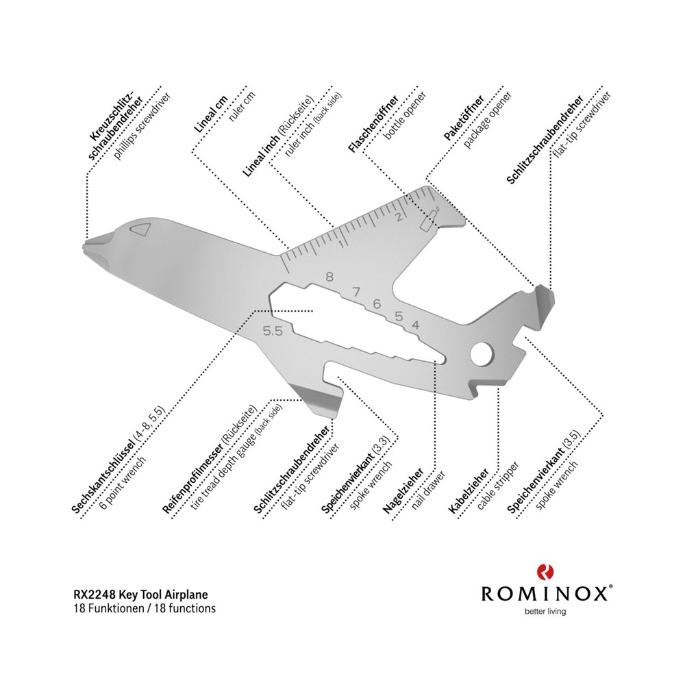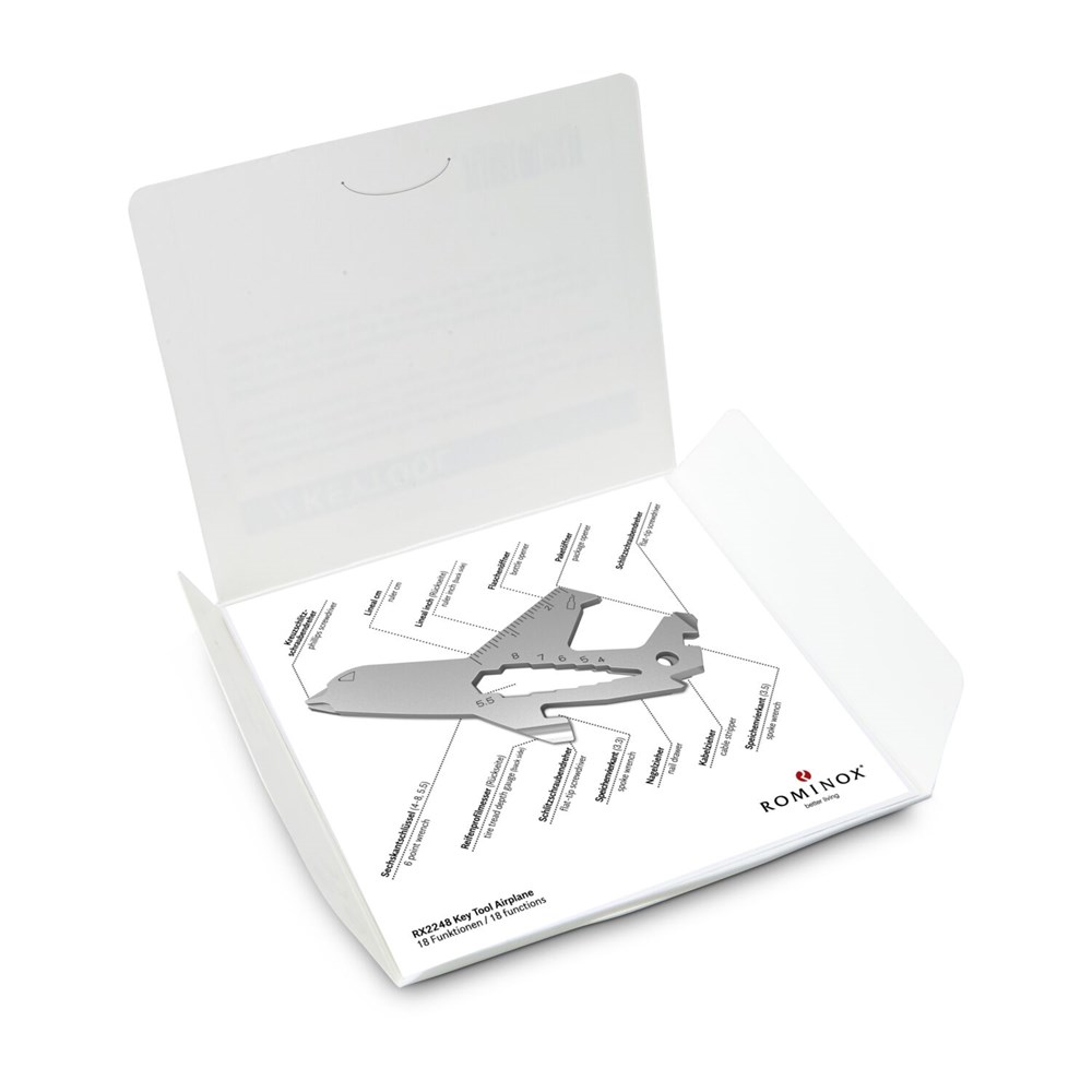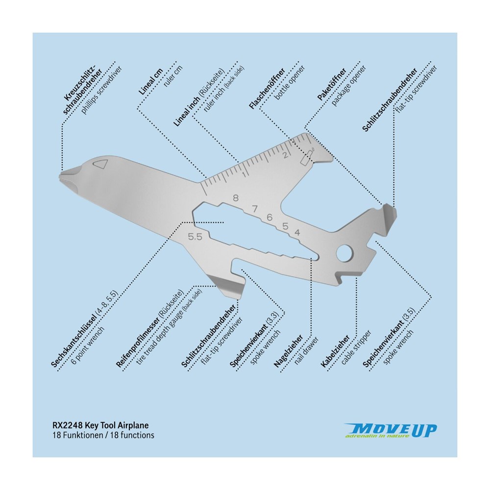 Multitool (aus robustem Edelstahl) für den Schlüsselbund inkl. Funktionsbeschreibung und Standard-Kartonverpackung, kundenindividuelle Verpackung und Funktionsbeschreibung ab 100 Stück möglich. In verschiedenen Standarddesigns verfügbar. Key Tool als Schlüsselanhänger mit 19 Funktionen: 6 Sechskantschlüssel, 2 Speichenvierkant, 2 Schlitzschraubendreher, 1 Nagelzieher, 1 Kreuzschlitzschraubendreher, 1 Kabelzieher, 1 Flaschenöffner, 1 Zentimeter Lineal, 1 Inch Lineal, 2 Reifenprofilmesser (1,6 mm und 4 mm), 1 Paketöffner - ab 3.000 Stück auch als Sonderproduktion mit individueller Key Tool Form möglich. Sprechen Sie uns an!