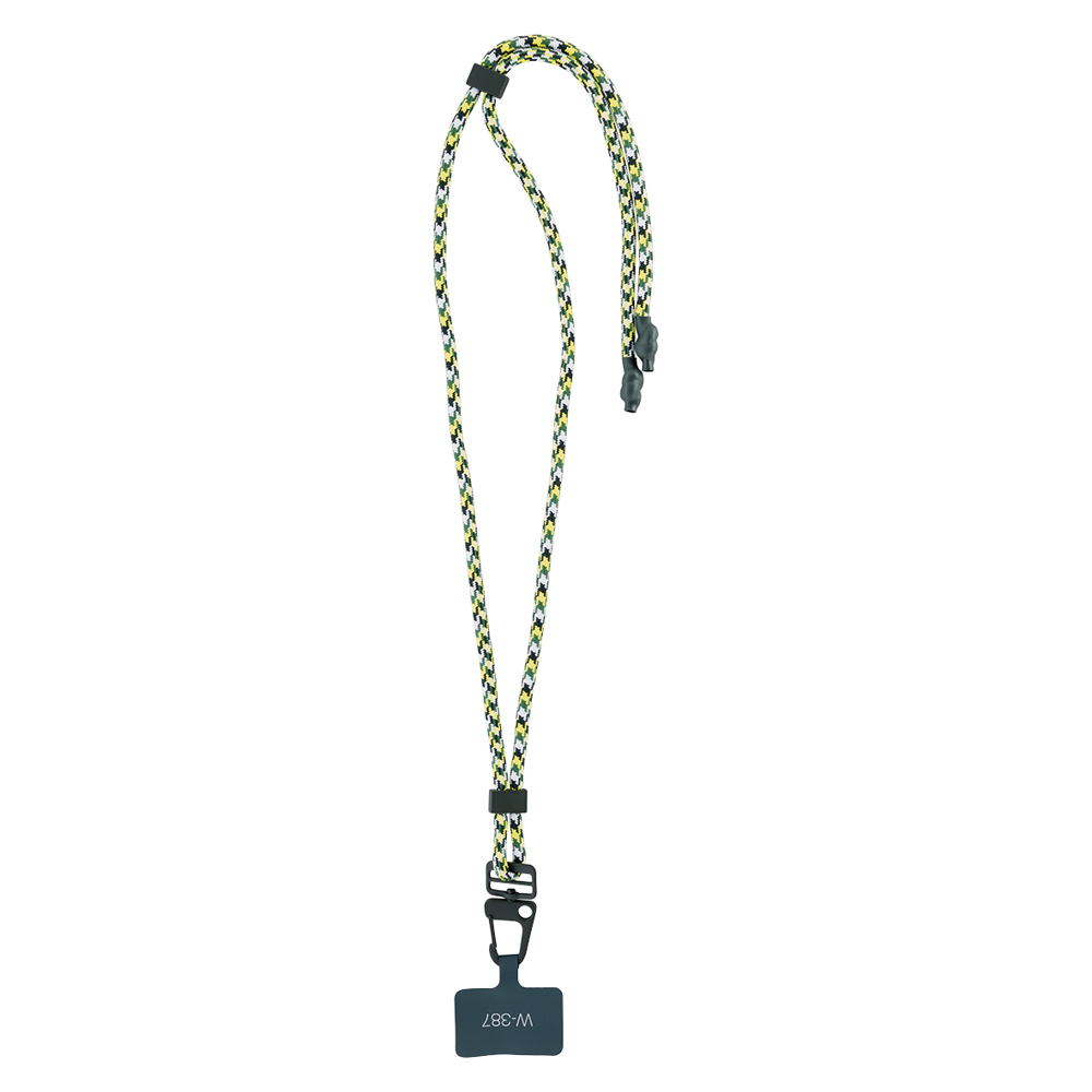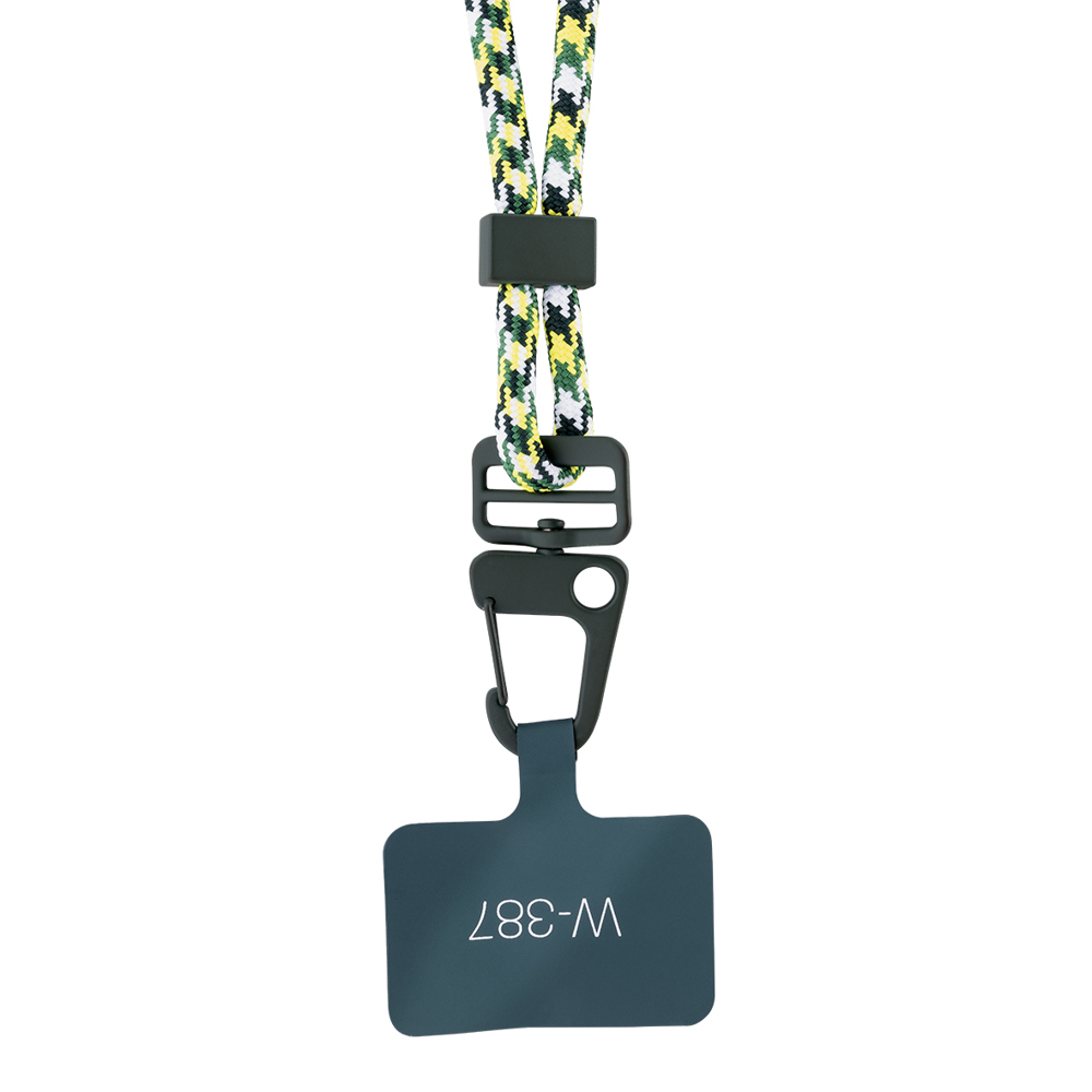 Ausstattung: Karabiner A-211 gummiert, Buckle B-401 gummiert, Handyhalter D-504 gummiert, 2 x Verstellklemme B-314 gummiert, Gummitips, Farbe des Bandes ähnlich Pantone möglich