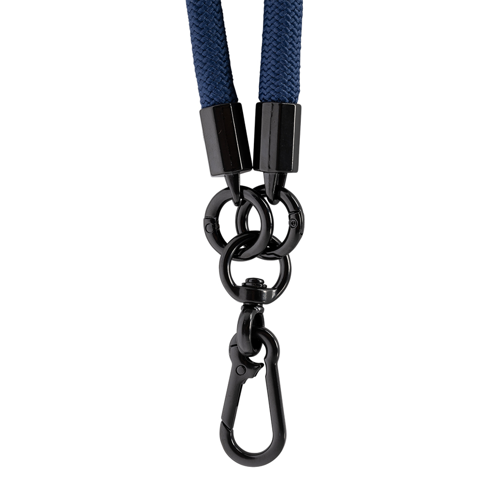 Ausstattung: Karabiner A-233, 2 x Ringkarabiner A-003, 2 x Schlüsselringhalter B-504, rundes Stofflabel B-209, Farbe des Bandes ähnlich Pantone möglich