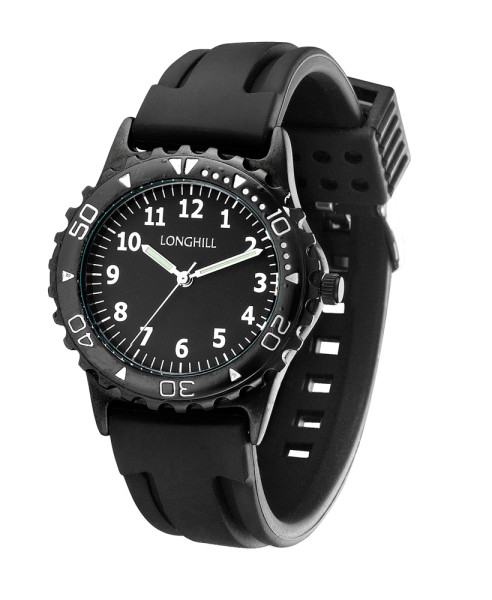 Ausstattung: Gehäusetiefe: 11 mm, Uhrwerk: PC 21, Zifferblatt schwarz Index weiß, Zeiger 7 h/min silber/ lumineszierend sek silber, Gehäuseboden Edelstahl, 3 ATM waterresistant, Silikonarmband, schwarz 20 mm, Lünette schwarz glänzend
