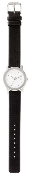 Ausstattung: Gehäusetiefe: 8,9 mm , Uhrwerk: 2115, Zifferblatt silber matt, Stundenapplikation silber, Zeiger 1 silber, Gehäuseboden Edelstahl , 3 ATM water resistant , Kunstlederarmband B3 schwarz gelocht 18mm