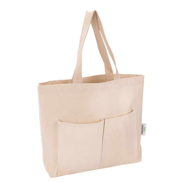 Die Freizeittasche bietet praktischen Stauraum mit einem offenen Hauptfach, einer offenen Innentasche und zwei offenen Vortaschen für schnellen Zugriff. Die robusten Canvas-Tragegriffe sorgen für einen bequemen Transport.