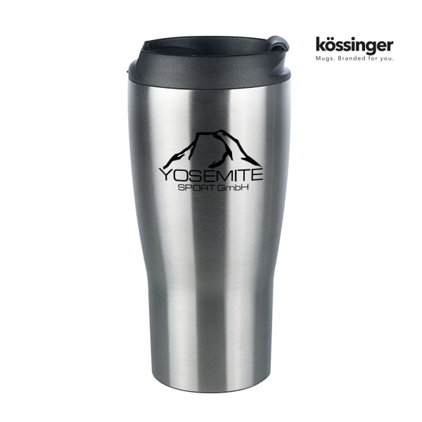 Kössinger Trophy Vakuumthermodose, Großer Vakuum-Thermobecher aus doppelwandigem 18/8 Edelstahl mit schwarzem Kunststoffdeckel, Abmessungen Höhe: ca. 170 mm, Durchmesser: ca. 82 mm, Füllmenge: ca. 0,4 l - Vakuum-Thermobecher für den Coffee To Go Trend - Doppelwandiges Edelstahl: hält Heißgetränke länger warm und