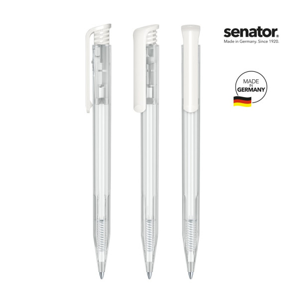 senator® Super Hit Clear Druckkugelschreiber, senator® Mine magic flow 1,0 mm, Minentyp: X20, Schreibfarbe: blau - Zeitloses, klassisches Design - Glänzend transparente Gehäuseoberfläche - Große Druckflächen auf Clip und Schaft - Der preiswerte Streuartikel für Events, Messen, Ausstellungen - Made in Germany