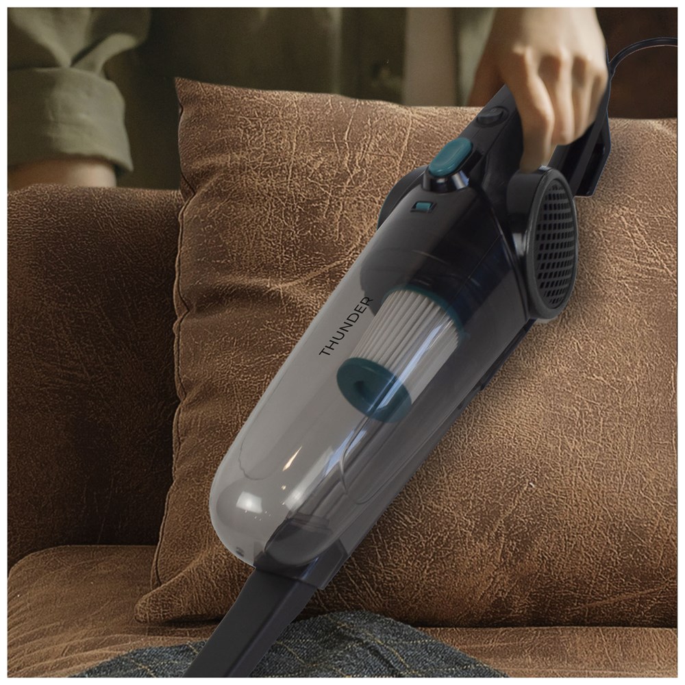 Staubsauger, der sich auch in einen Handstaubsauger verwandeln lässt. Wenn er am Kabel angeschlossen ist, hat er eine Leistung von 600W, dazu einen HEPA-Filter und einen Saugdruck von 15 kPa. Enthaltenes Zubehör: Verbindungsstück, Adapterstück, Vierkantbürste, Verlängerungsrohre, Rundbürste, Winkelrohr, Fugendüse, lange Düse. Fassungsvermögen des Staubbehälters: 0,5L. Lautstärke in Dezibel: ≤78 dB.