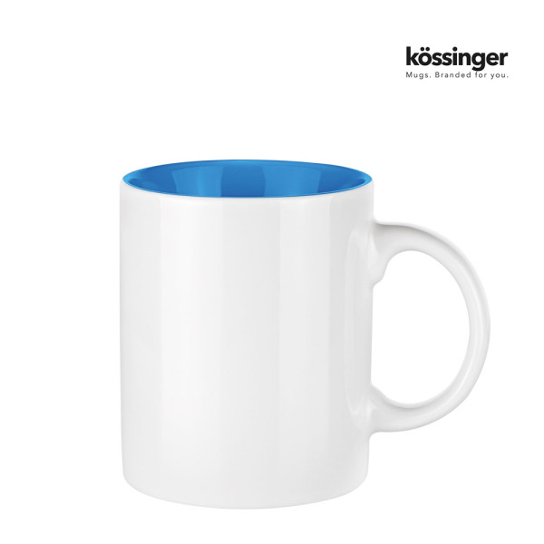 Kössinger Keramiktasse Carina - Werbetasse mit Farbkontrast. Aussen klassisch weiß, innen und am Henkel mit farbiger Glasur, ist dieser klassische Henkelbecher ein Hingucker, dessen großer Druckbereich für eine Vielzahl von Werbemöglichkeiten- und Ideen passt.
