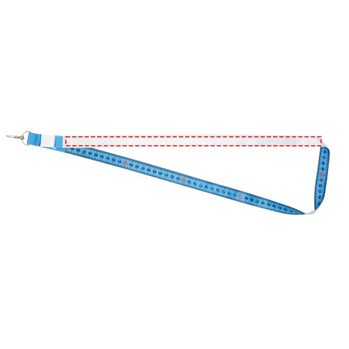 1 Meter Sublimation-Lanyard aus recyceltem PET. Dieses Lanyard ist auf 1 Seite vollfarbig bedruckt, während die Rückseite mit einem Maßband bedruckt ist. Das Lanyard ist mit einem Metallhaken versehen und man kann ein Namensschild, einen Ausweis oder Schlüssel daran befestigen.