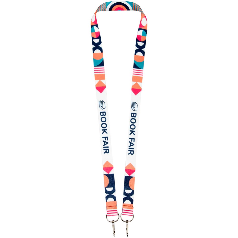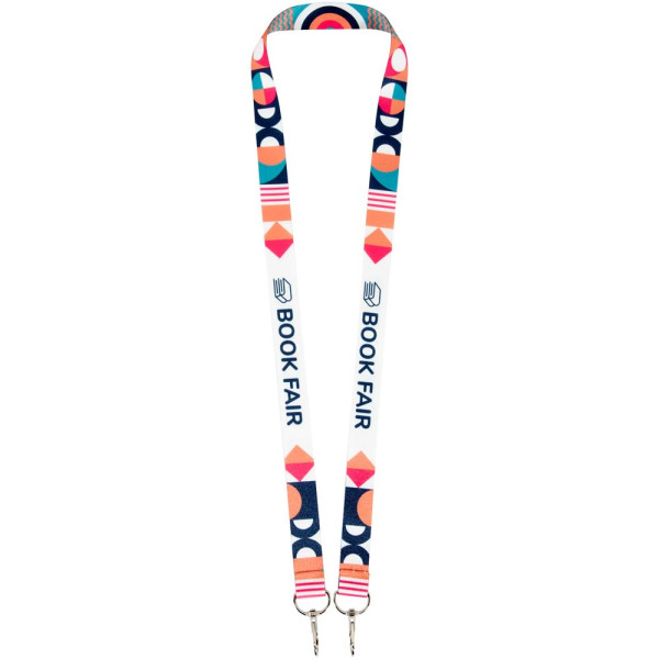 Sublimation-Lanyard aus RPET im Vollfarbdesign, RPET-Band und 2 Metallhaken. Sie können ein Namensschild, einen Ausweis oder Schlüssel daran befestigen. Erhältlich in 4 verschiedenen Breiten: 10, 15, 20 und 25 mm.