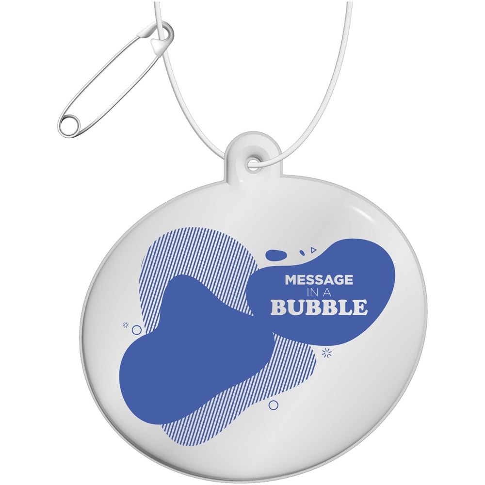 Befestigen Sie diesen reflektierenden Anhänger an Kleidung, Taschen oder anderen Gegenständen im Freien, um die Sichtbarkeit in der Dunkelheit zu erhöhen. Durch die Verwendung dieser zertifizierten Anhänger machen Sie die Verkehrssicherheit zu einem Merkmal Ihrer Marke. Die Anhänger werden mit einer weißen Schnur und einer Sicherheitsnadel zur einfachen Befestigung geliefert. Erhältlich in verschiedenen Formen und Größen und in weißer oder gelber Farbe. Mit einer fluoreszierenden RFX™ Soft-Reflexionsfolie aus phthalatfreiem PVC oder der nachhaltigeren Option TPU. Die Materialien wurden gemäß der SVHC (Substances of Very High Concern) REACH-Kandidatenliste getestet und sind frei von Phthalaten. Die Anhänger sind CE-geprüft und zugelassen gemäß EN 17353 Typ B 1. Jeder Artikel wird mit einer 10 cm langen Schnur und einer Nadel geliefert, um ihn einfach an einer Tasche, Jacke usw. zu befestigen. Zusammen mit einem Informationsblatt verpackt in einem Glassine-Beutel, einem nachhaltigen Material, das aus Holzzellstoff hergestellt wird. Hergestellt in Europa.