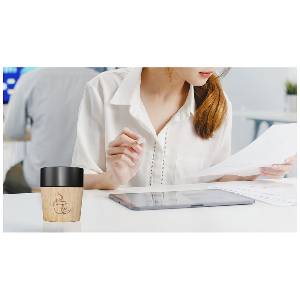 150 ml-Keramikbecher mit magnetischem Holzboden, ideal für Espresso oder Espresso Lungo. Der Holzboden lässt sich mit Hilfe der intelligenten Magnettechnik vom Keramikbecher lösen und so leicht reinigen. Der Keramikbecher ist spülmaschinenfest. Wird in einer Geschenkbox aus recyceltem Kraftpapier (7,6 x 7,6 x 9,5 cm) geliefert.