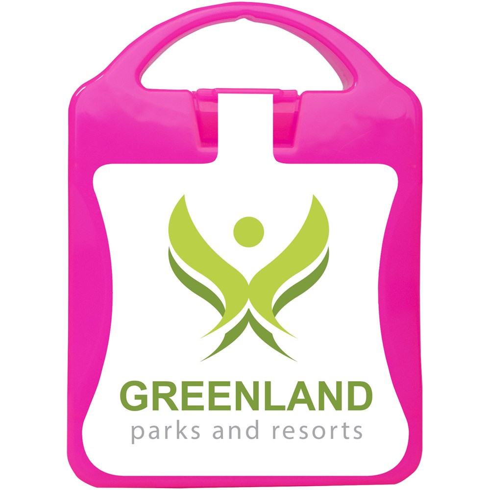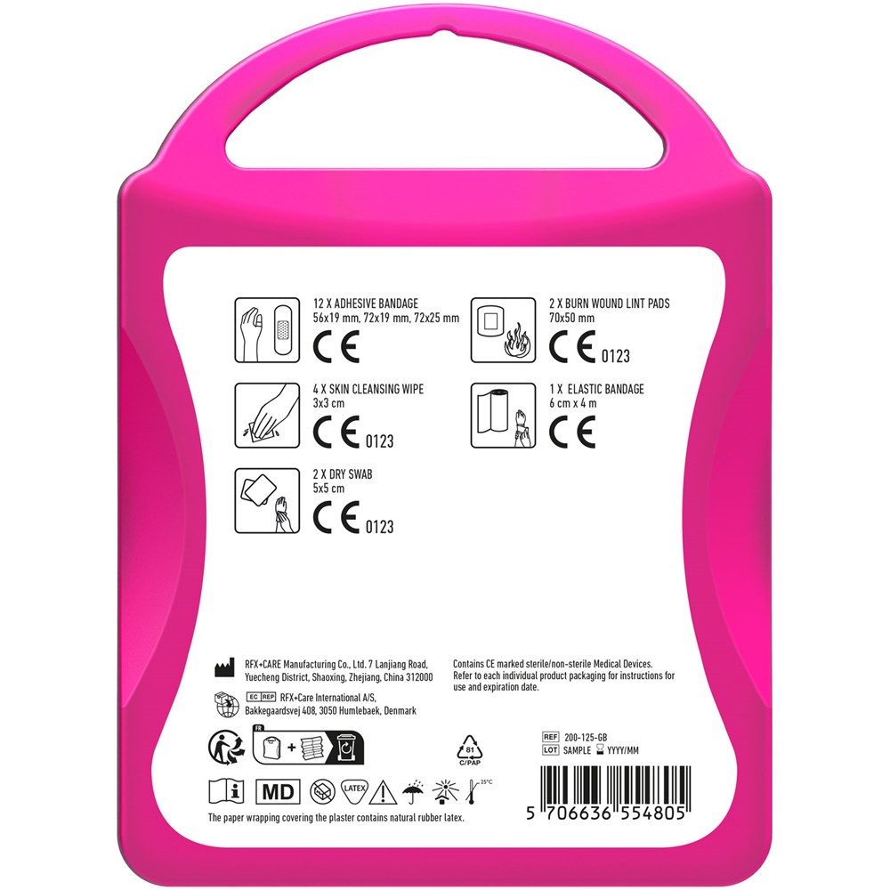 Dieses klassische Erste-Hilfe Set ist perfekt geeignet für den Gebrauch zu Hause oder im Auto, um bei Verletzungen und Unfällen vorbereitet zu sein. Inhalt: 12 wasserfeste Pflaster, 4 hautreinigende Tupfer, 2 Trockentupfer, 1 elastischer Verband, 2 Mullbinden für Brandwunden. Alle im Set enthaltenen Erste-Hilfe- und Pflegeprodukte erfüllen alle geltenden EU-Vorschriften. Preis inkl. vollfarbigem Druck.