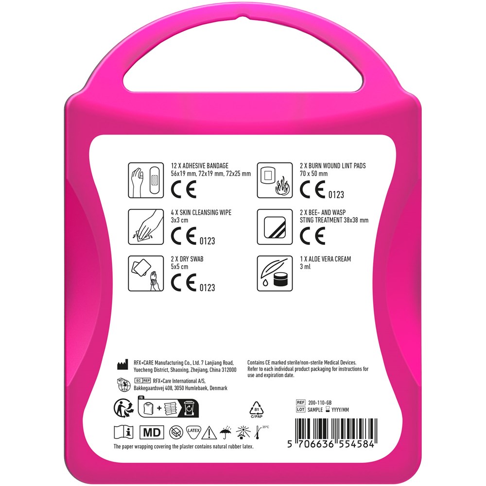 Ideales Erste-Hilfe Set um sich vor Bissen und Stichen von Insekten zu schützen oder Ihre Haut zu pflegen. Inhalt: 12 wasserfeste Pflaster, 4 hautreinigende Tupfer, 2 Trockentupfer, 2 Mullbinden für Brandwunden, 1 Bienen- /Wespenpflaster, 1 Aloe Vera Creme. Alle im Set enthaltenen Erste-Hilfe- und Pflegeprodukte erfüllen alle geltenden EU-Vorschriften. Preis inkl. vollfarbigem Druck.