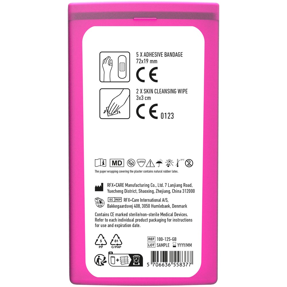 Ideales Erste-Hilfe Set um es bei sich zu tragen. Das Set kann leicht in der Tasche verstaut werden. Mit diesem Set sind Sie gut vorbereitet bei kleinen Unfällen. Inhalt: 5 wasserfeste Pflaster, 2 hautreinigende Tupfer. Alle im Set enthaltenen Erste-Hilfe- und Pflegeprodukte erfüllen alle geltenden EU-Vorschriften. Preis inkl. vollfarbigem Druck.