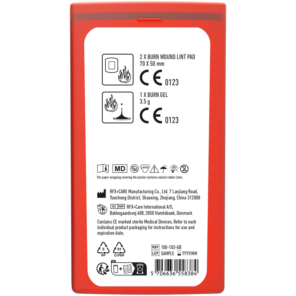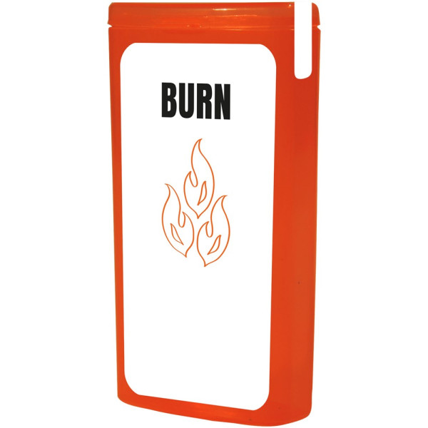 Ideales Set bei kleinen Verbrennungen. Das Set kann leicht in der Tasche verstaut werden. Inhalt: 2 Mullbinden für Brandwunden, 1 Brand- und Wundgel. Alle im Set enthaltenen Erste-Hilfe- und Pflegeprodukte erfüllen alle geltenden EU-Vorschriften. Preis inkl. vollfarbigem Druck.