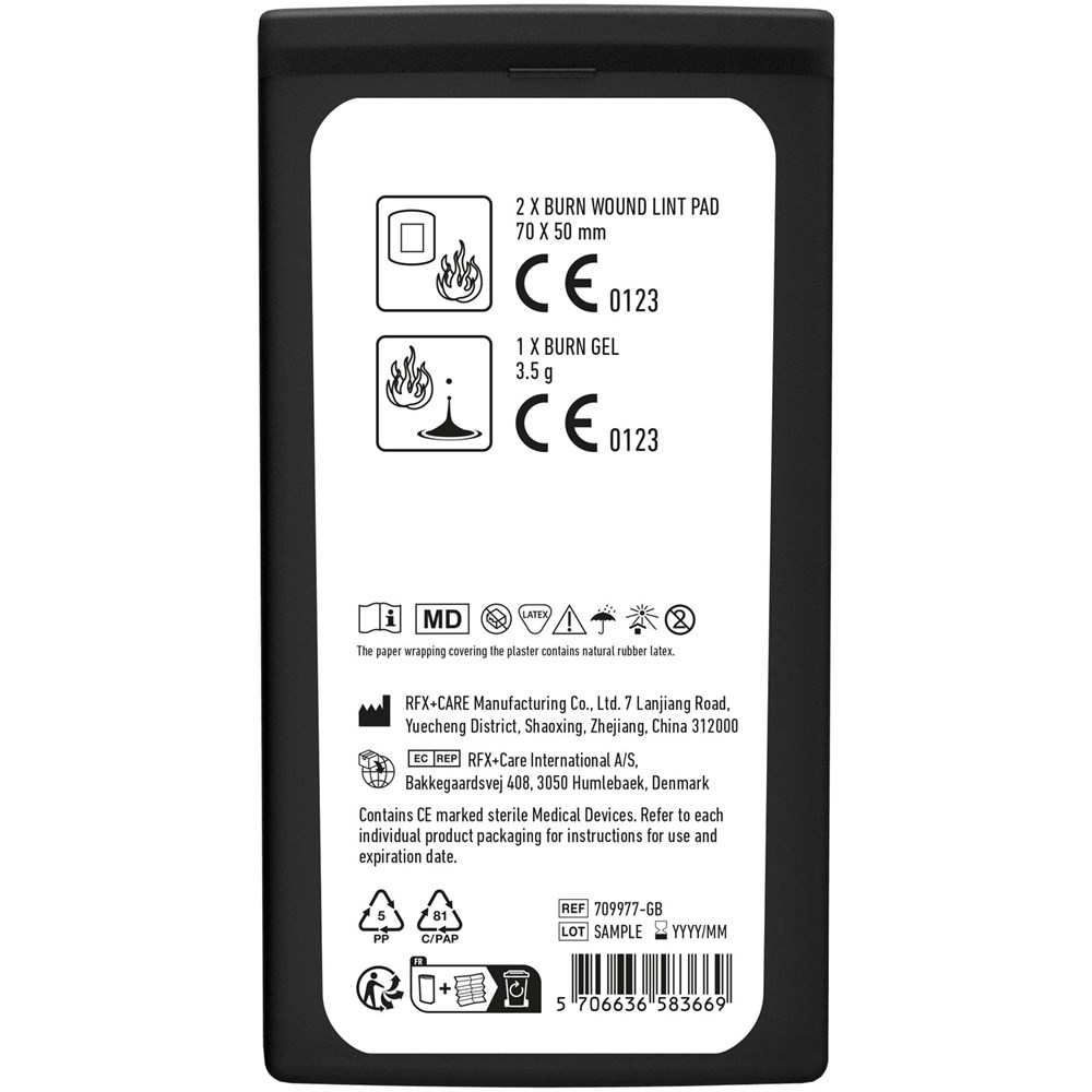 Ideales Set bei kleinen Verbrennungen. Das Set kann leicht in der Tasche verstaut werden. Inhalt: 2 Mullbinden für Brandwunden, 1 Brand- und Wundgel. Alle im Set enthaltenen Erste-Hilfe- und Pflegeprodukte erfüllen alle geltenden EU-Vorschriften. Preis inkl. vollfarbigem Druck.