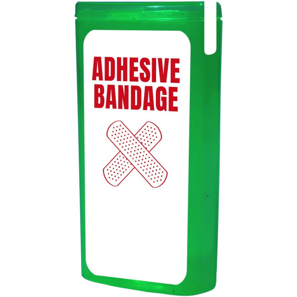 Ideales Pflasterset für unterwegs um immer vorbereitet zu sein bei kleinen Unfällen. Das Set kann leicht in der Tasche verstaut werden. Inhalt: 10 Standard Pflaster. Alle im Set enthaltenen Erste-Hilfe- und Pflegeprodukte erfüllen alle geltenden EU-Vorschriften. Preis inkl. vollfarbigem Druck.