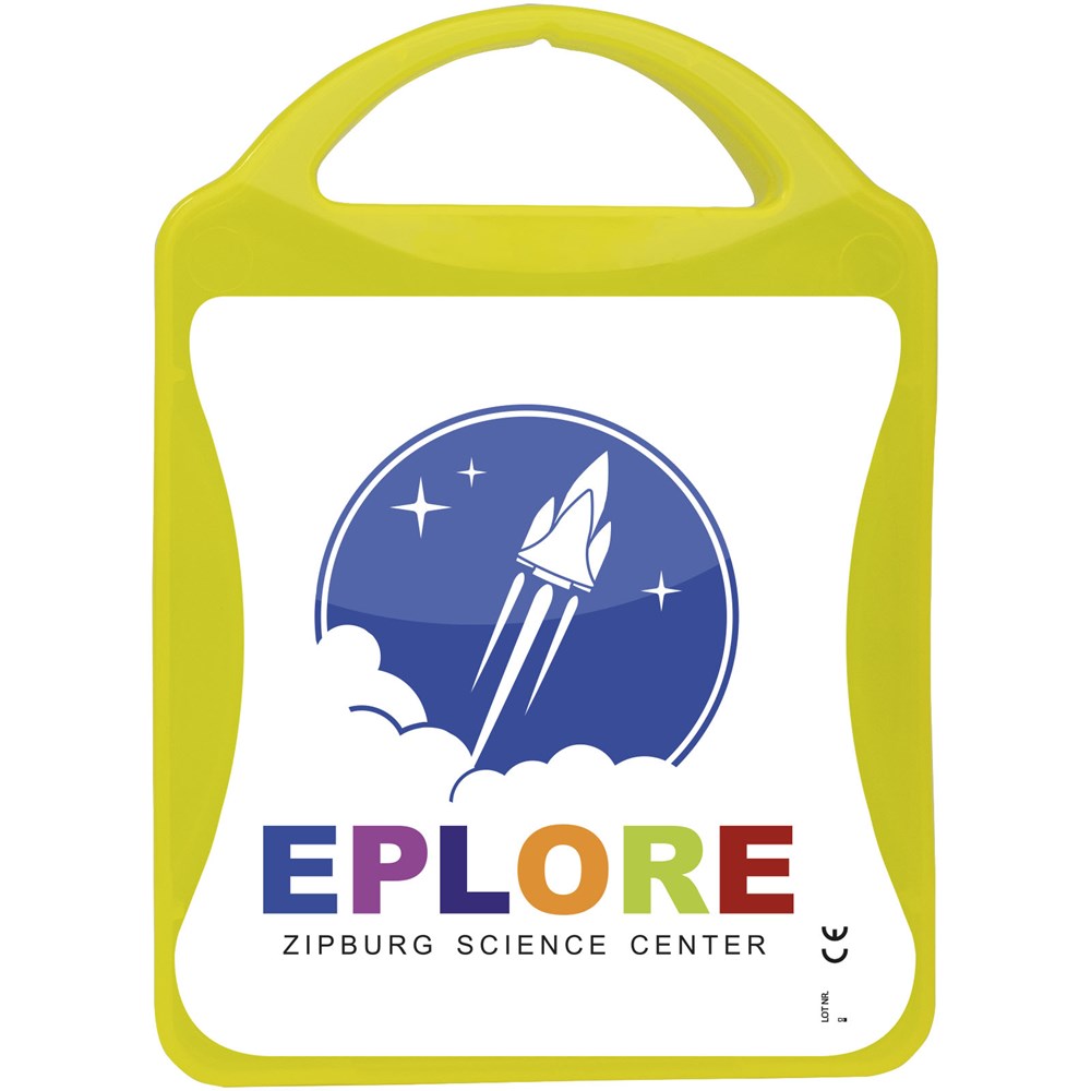 Dieses umfangreiche Erste-Hilfe Set ist ein handliches Set für Ihrem Haushalt um Verletzungen und Unfälle zu behandeln. Inhalt: 1 Erste-Hilfe-Leitfaden, 1 Blasenpflaster, 12 wasserfeste Pflaster, 1 Metall Pinzette, 1 Schere, 1 Dreieckstuch, 1 Paar Einmalhandschuhe, 2 Wundkompressen, 1 steriler Wundverband, 2 Trockentupfer, 4 hautreinigende Tupfer, 1 Mund-zu-Mund-Schutz. Alle im Set enthaltenen Erste-Hilfe- und Pflegeprodukte erfüllen alle geltenden EU-Vorschriften. Preis inkl. vollfarbigem Druck.