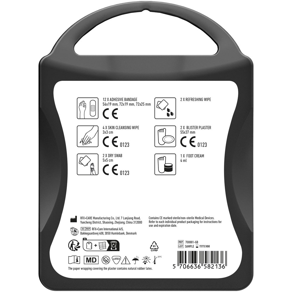 Das MyKit für den aktiven Lebensstil deckt den Bedarf an grundlegender Wundversorgung, Blasen sowie einem Fußgel zur Erholung. Ideal zum Mitnehmen bei Aktivitäten wie Wandern, Laufen, Golfen usw. Alle im Kit enthaltenen Erste-Hilfe- und Pflegeprodukte entsprechen den geltenden EU-Vorschriften. Der Preis beinhaltet Vollfarbdruck.