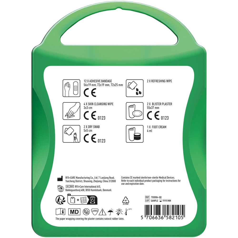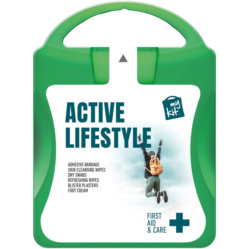Das MyKit für den aktiven Lebensstil deckt den Bedarf an grundlegender Wundversorgung, Blasen sowie einem Fußgel zur Erholung. Ideal zum Mitnehmen bei Aktivitäten wie Wandern, Laufen, Golfen usw. Alle im Kit enthaltenen Erste-Hilfe- und Pflegeprodukte entsprechen den geltenden EU-Vorschriften. Der Preis beinhaltet Vollfarbdruck.