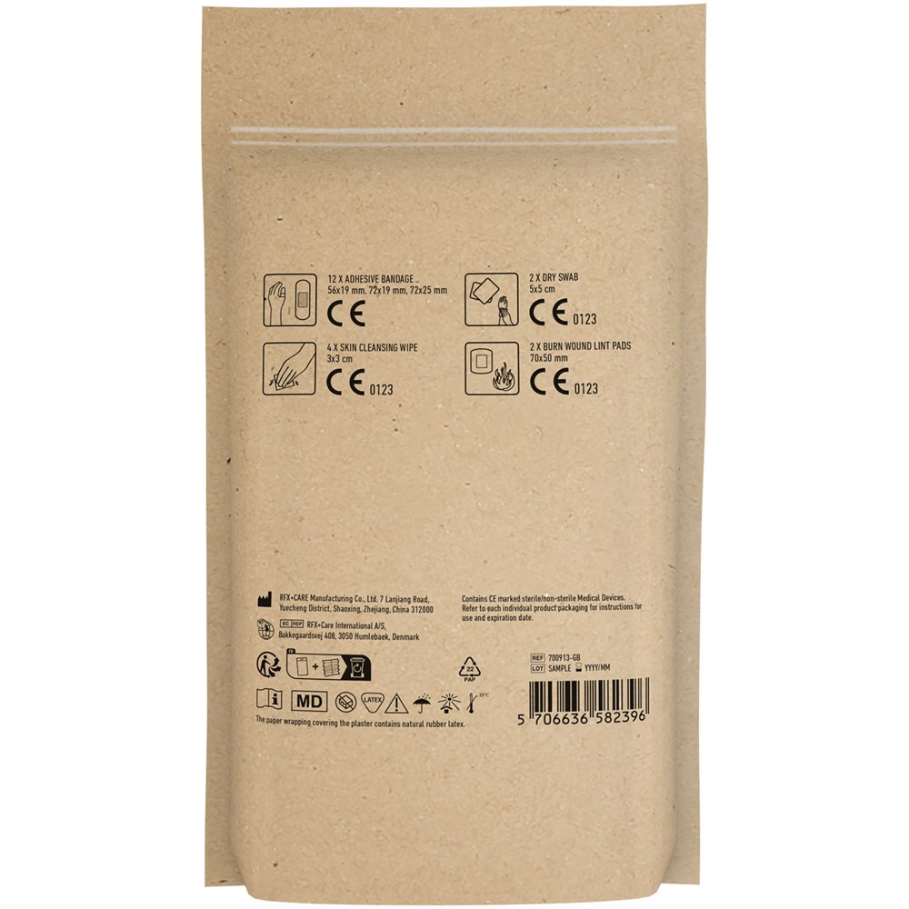 Erste-Hilfe Set für Reisende. Mit diesem Set sind Sie vorbereitet um Verletzungen während Ihrer Reise zu behandeln. Inhalt: 12 wasserfeste Pflaster, 4 hautreinigende Tupfer, 2 Trockentupfer, 2 Mullbinden für Brandwunden. Alle im Set enthaltenen Erste-Hilfe- und Pflegeprodukte erfüllen alle geltenden EU-Vorschriften. Preis inkl. vollfarbigem Druck. Geliefert in Papierhülle.