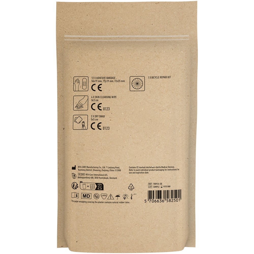 Ideales Set für jede Fahrradtour. Seien Sie gut vorbereitet bei kleinen Verletzungen und einem platten Reifen. Inhalt: 12 wasserfeste Pflaster, 4 hautreinigende Tupfer, 2 Trockentupfer, 1 Reparaturset. Alle im Set enthaltenen Erste-Hilfe- und Pflegeprodukte erfüllen alle geltenden EU-Vorschriften. Preis inkl. vollfarbigem Druck. Geliefert in Papierhülle.