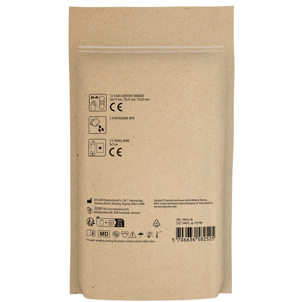 Reiseset für Kinder mit den notwendigsten Utensilien zur Erstversorgung von Wunden sowie Bandagen. Inhalt: 12 Kinderpflaster, 2 Erfrischungstücher und 2 Reisebandagen. Alle in diesem Set enthaltenen Erste-Hilfe- und Pflegeprodukte entsprechen den geltenden EU-Vorschriften. Der Preis beinhaltet einen Vollfarbdruck. In einer Papiertasche verpackt.