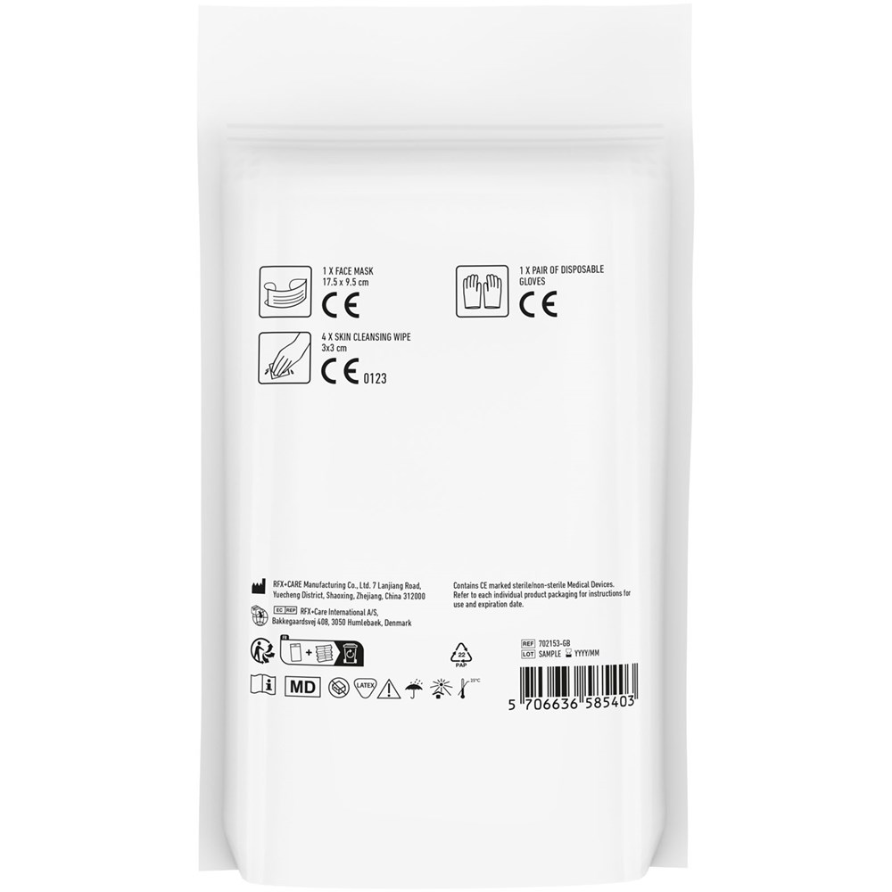 Schutzset praktisch für zu Hause, im Auto oder im Urlaub. Inhalt: 1 Gesichtsmaske, 4 Reinigungstücher und 1 Paar Handschuhe. Alle im Set enthaltenen Artikel erfüllen alle geltenden EU-Vorschriften. Der Preis beinhaltet einen Vollfarbdruck. Geliefert in Papierhülle.